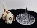 Ceramic Dog And Glass Ring Holders