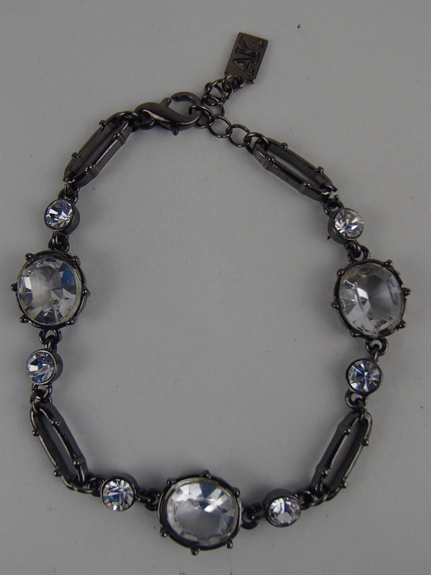 Dainty Gunmetal And Clear Rhinestone Bracelet By Ann Klein