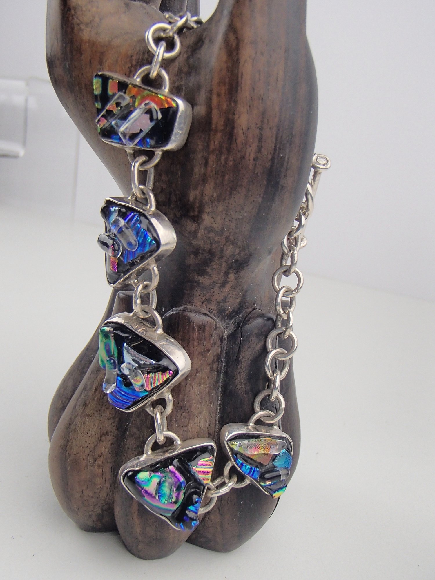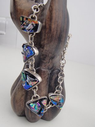 Dazzling 925 Sterling Silver Dichroic Art Glass Toggle Bracelet