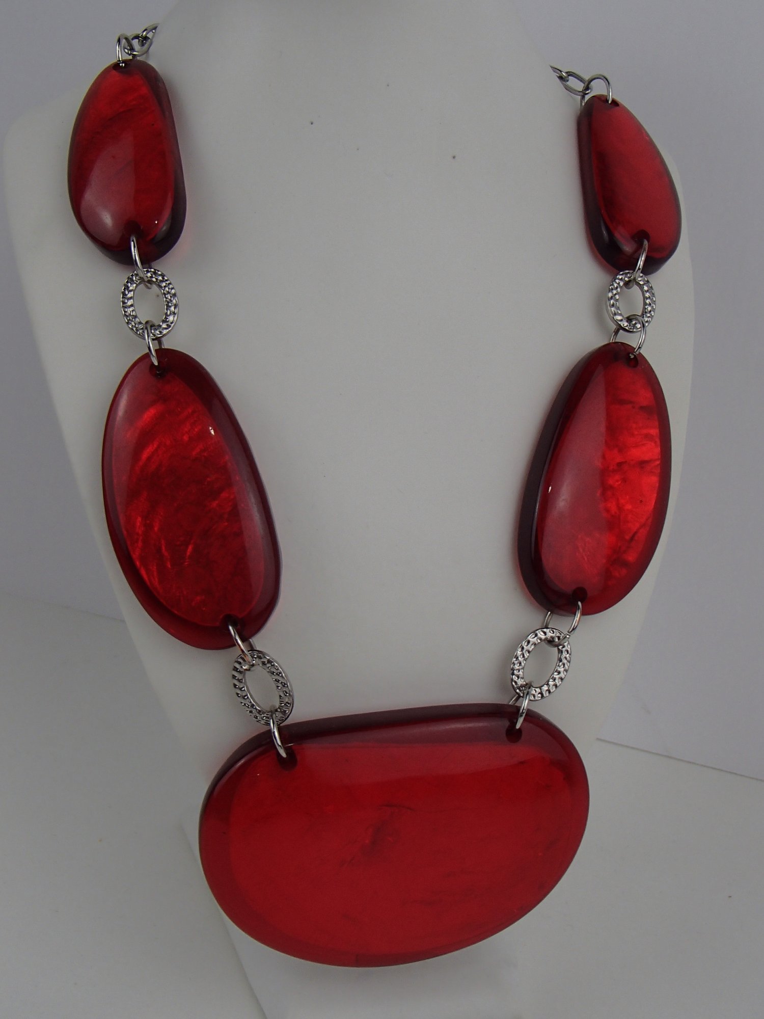 Festive Red Lucite Necklace 23" With 3" Extender Chain