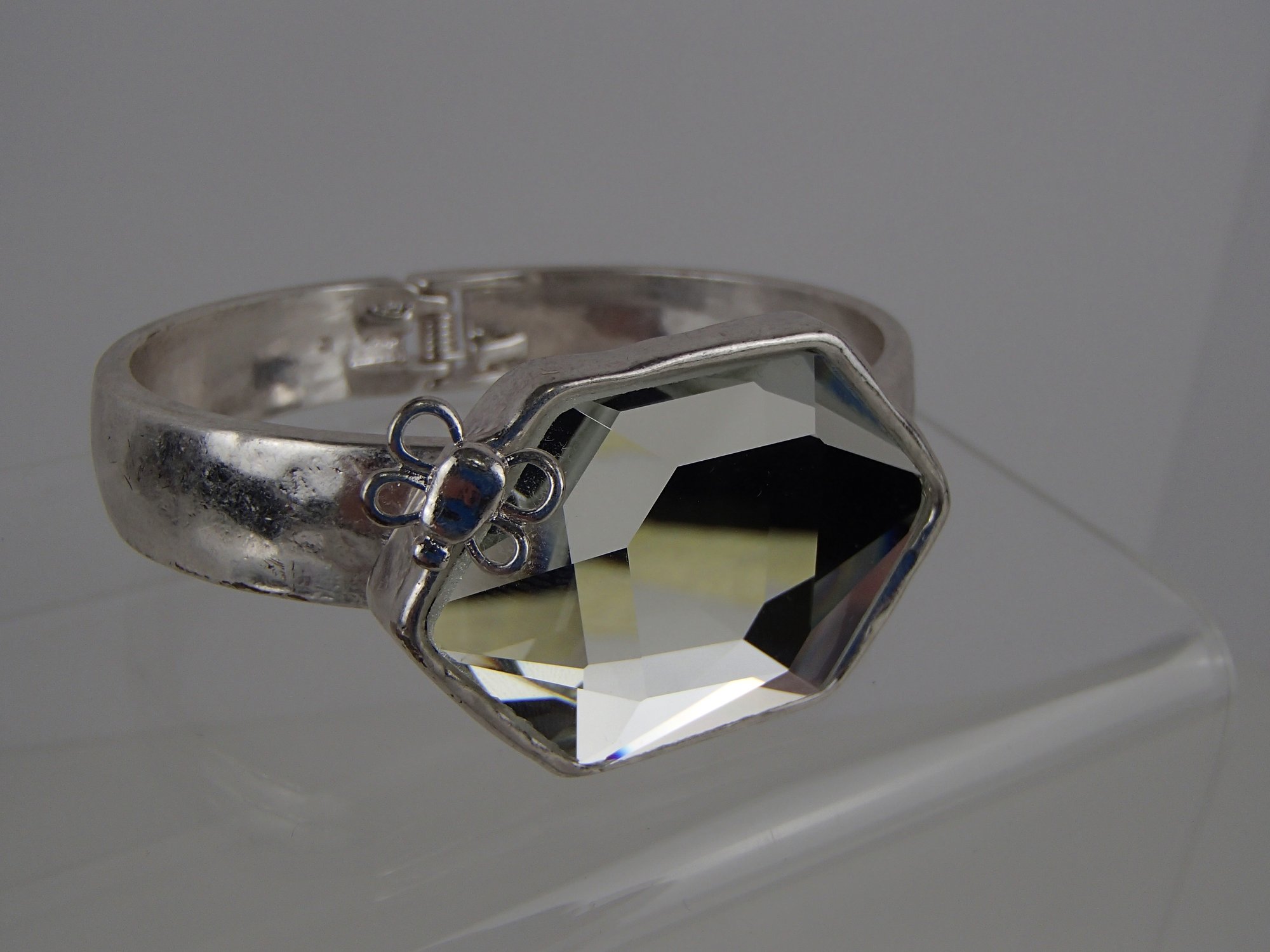 Hammered Metal With Glass Gem Hinged Bangle Weight 54.3g