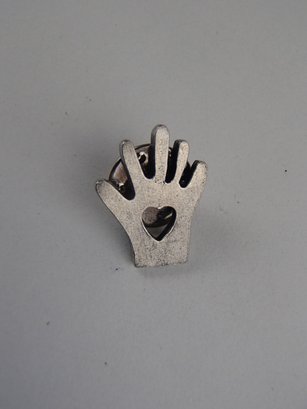 Heart In Hand Tie Tack Folk Art Marked DP 1987 Maiden Vermont