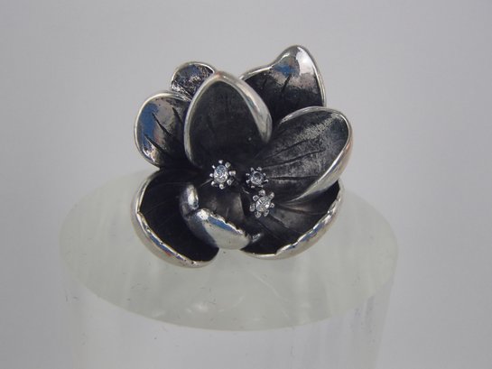 Metal Flower Cocktail Stretch Ring Size 8 Weight 20.4g