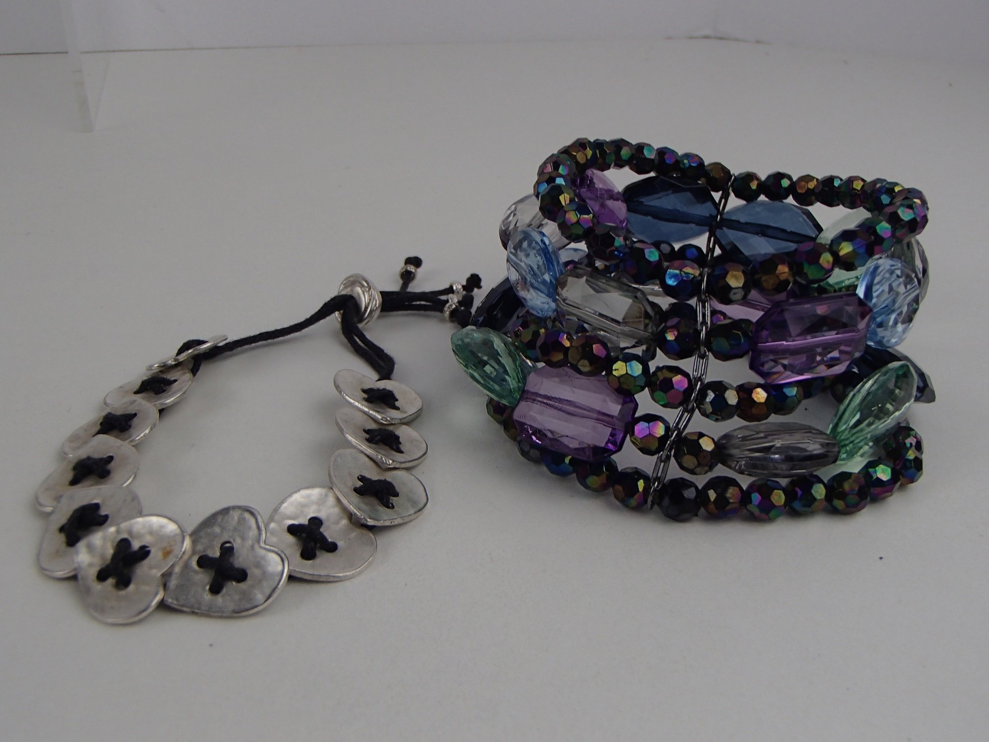 Metal Heart String Pull Bracelet And 5 Strand Acrylic Stretch Bracelet