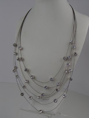 Multistrand Wire Necklace With Floating Rhinestones