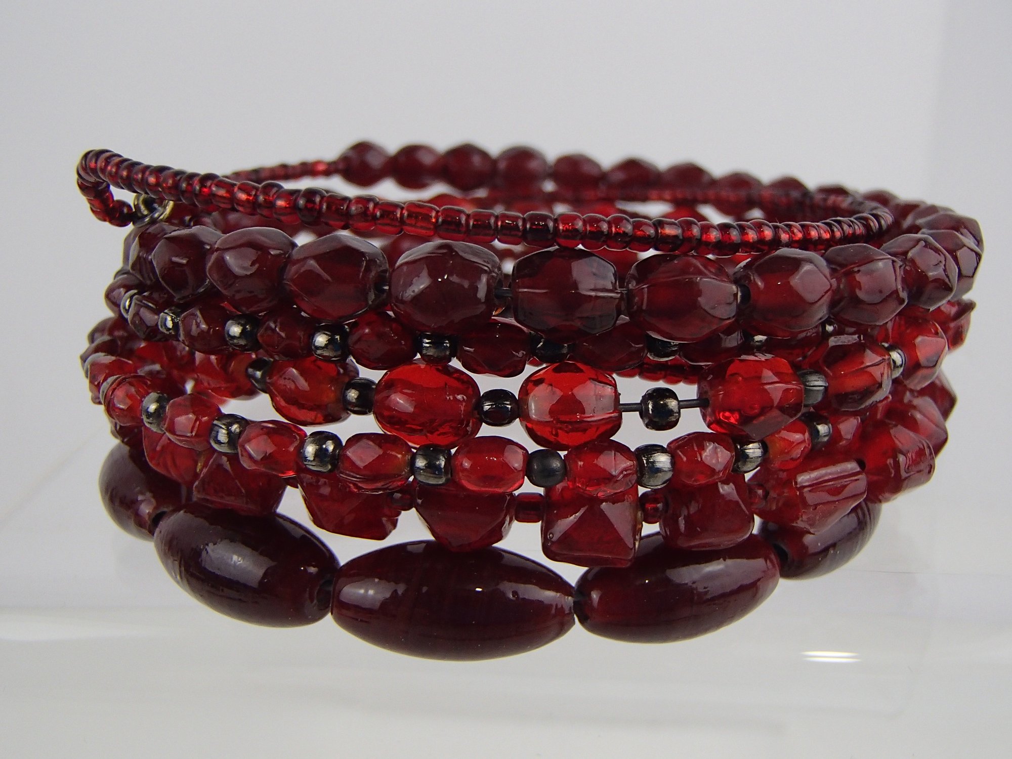 Red Glass Beads Of All Shades Wire Wrap Bracelet