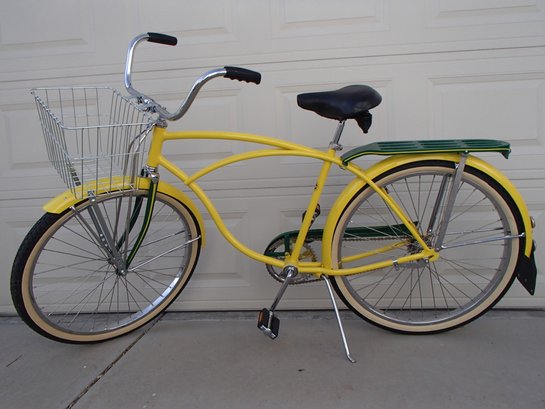 New-basket, seat and fenders, wheels, chrome plating, front and back hubs, powder coating, chain, decals, nuts and bolts. Over 1500.00 worth of restoration. Built to last your lifetime and more.