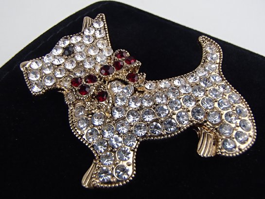Schnauzer Scottie Dog Gold Tone Rhinestone Brooch By Monet