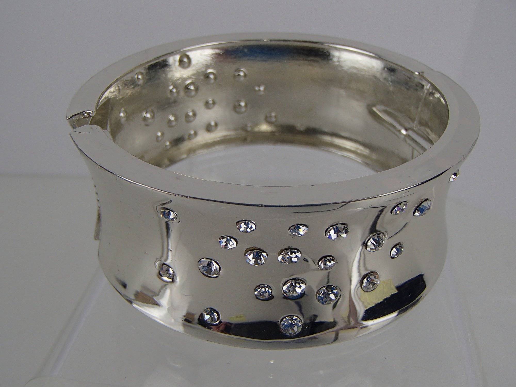 Shiny Silver Tone Hinged Bangle