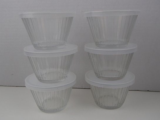 Six Pasabahce Turkish Glass Small Custard Dessert Bowl With Lids