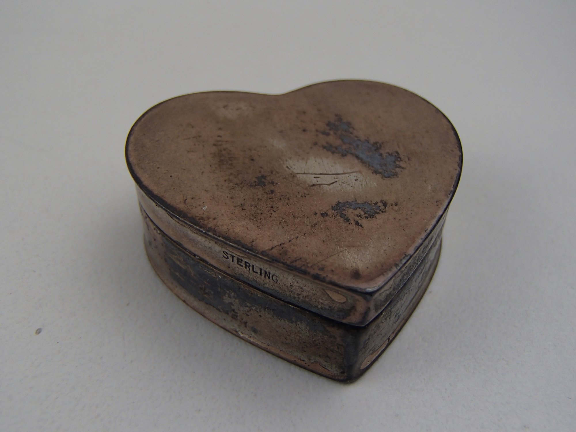 Sterling Silver Heart Shaped Porcelain Lined Pill Box / Snuff Box Weight 15g