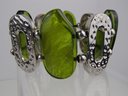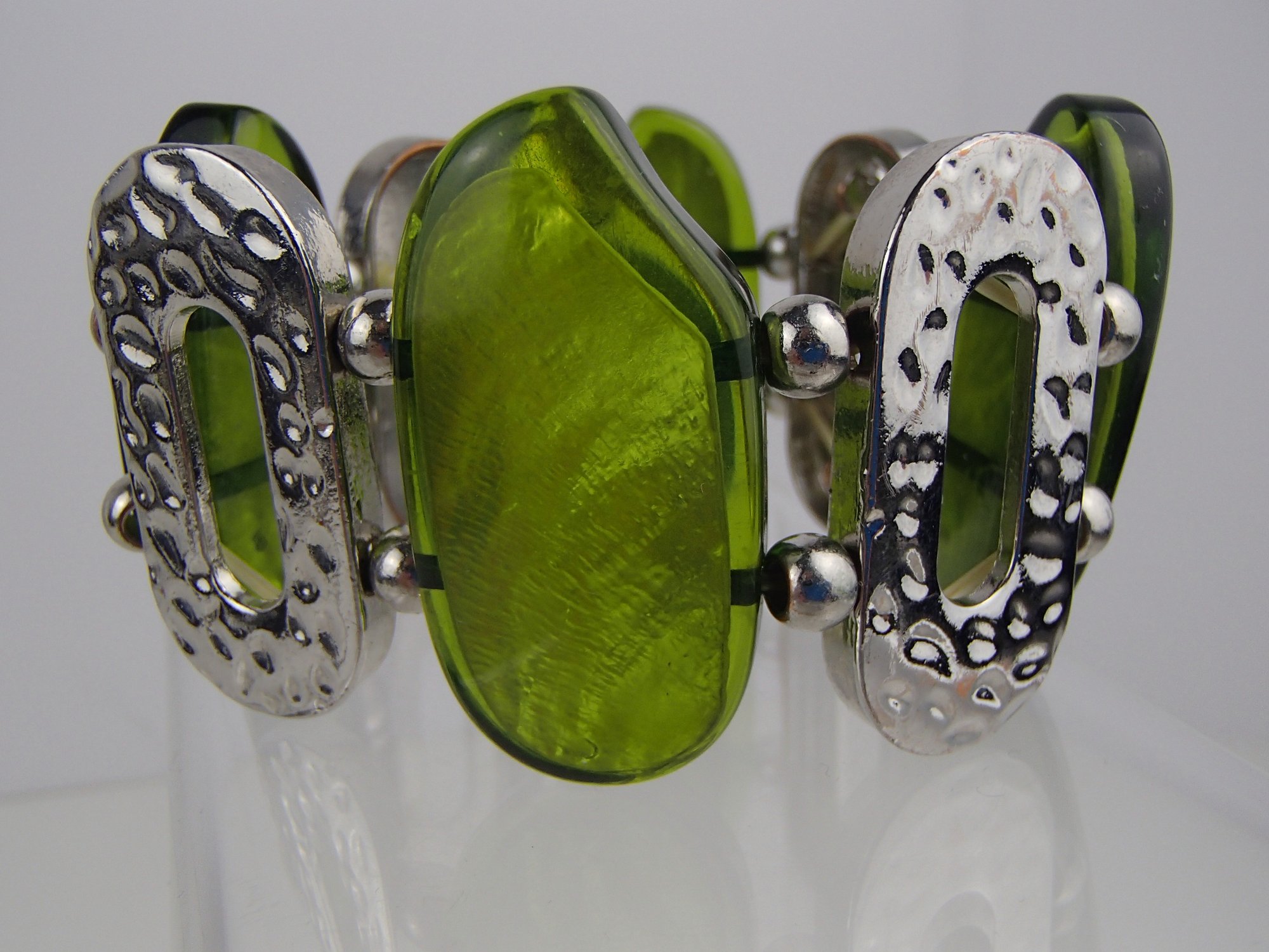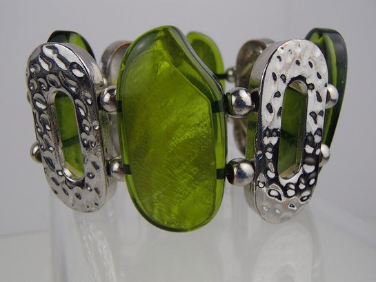 Stunning Green Lucite And Silver Tone Metal Bracelet