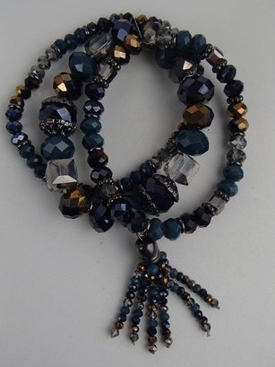 Three Strand Glass Bead Stretch Bracelet