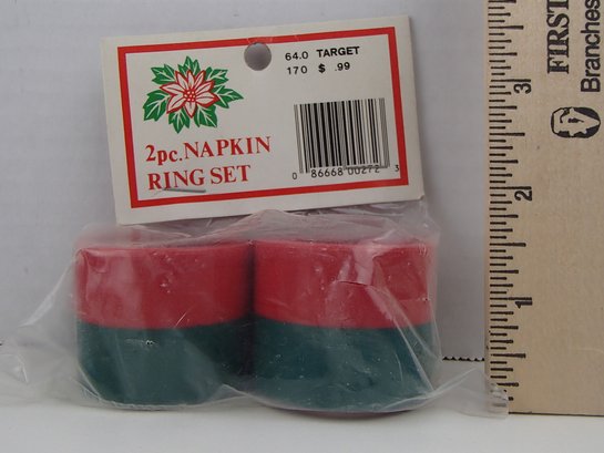 Twelve Red And Green Napkin Rings Made In Hong Knog