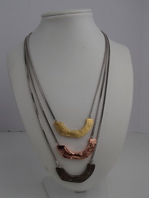 Vintage 22" Anne Marie Chagnon Mixed Metal Box Chain Multi Strand Necklace