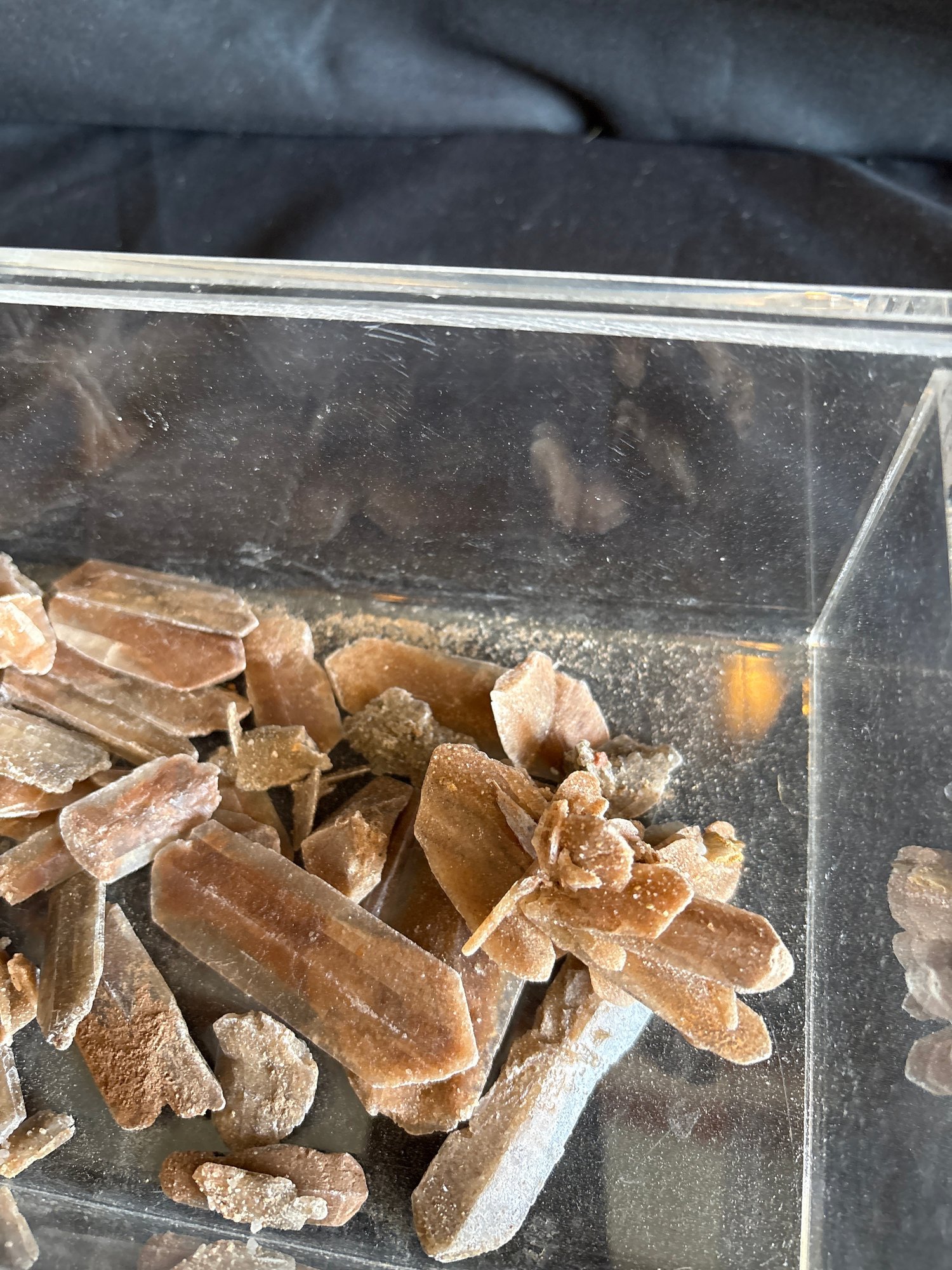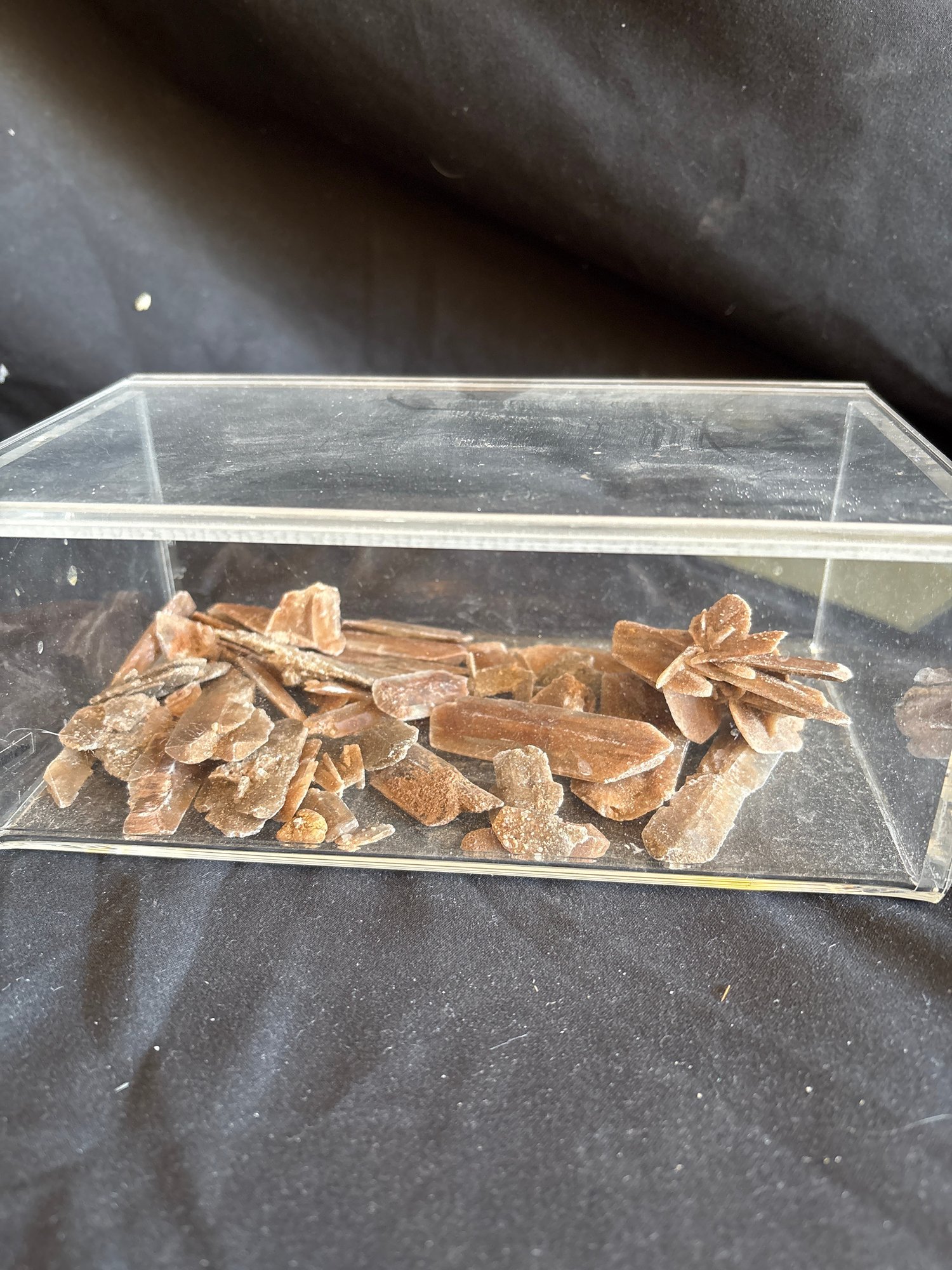 In acrylic box with slide open top