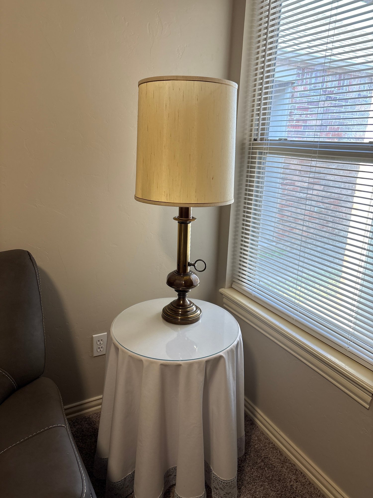 36” high lamp and glass top with 20” diameter decorator table