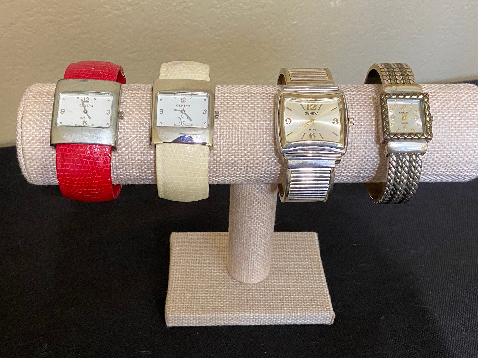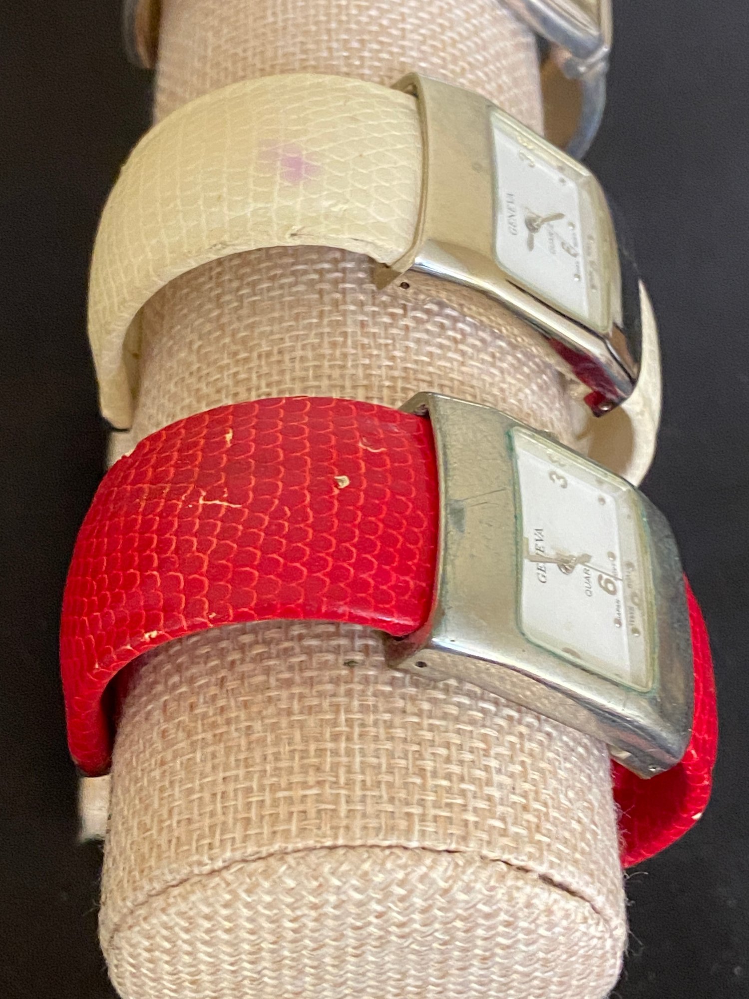 Untested. Two of the Geneva watches have some wear on the watch band (pictured).