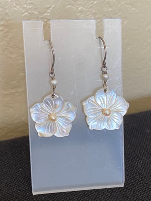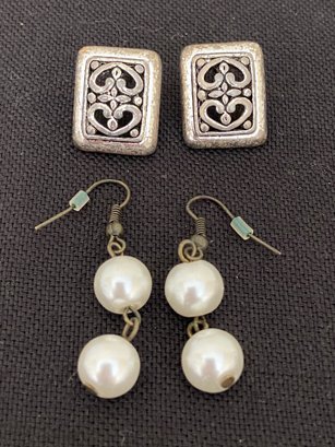 A mix of faux pearl earrings. Several super unique and beautiful pairs. One pair has a broken hook (pictured) which is a simple replacement. Used condition.