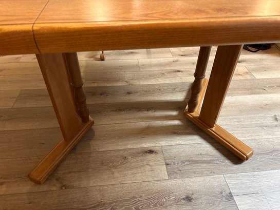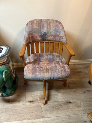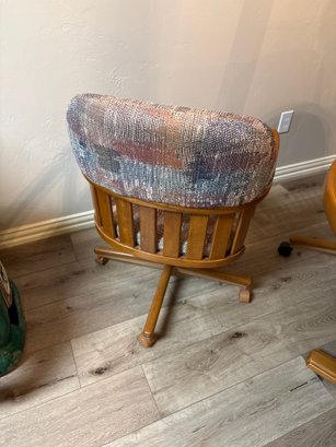 Table is 58x40x29 without leaf, 40”. Four catered chairs measure 23x24x34. Some of casters have been changed out over the years but all work and very comfortable