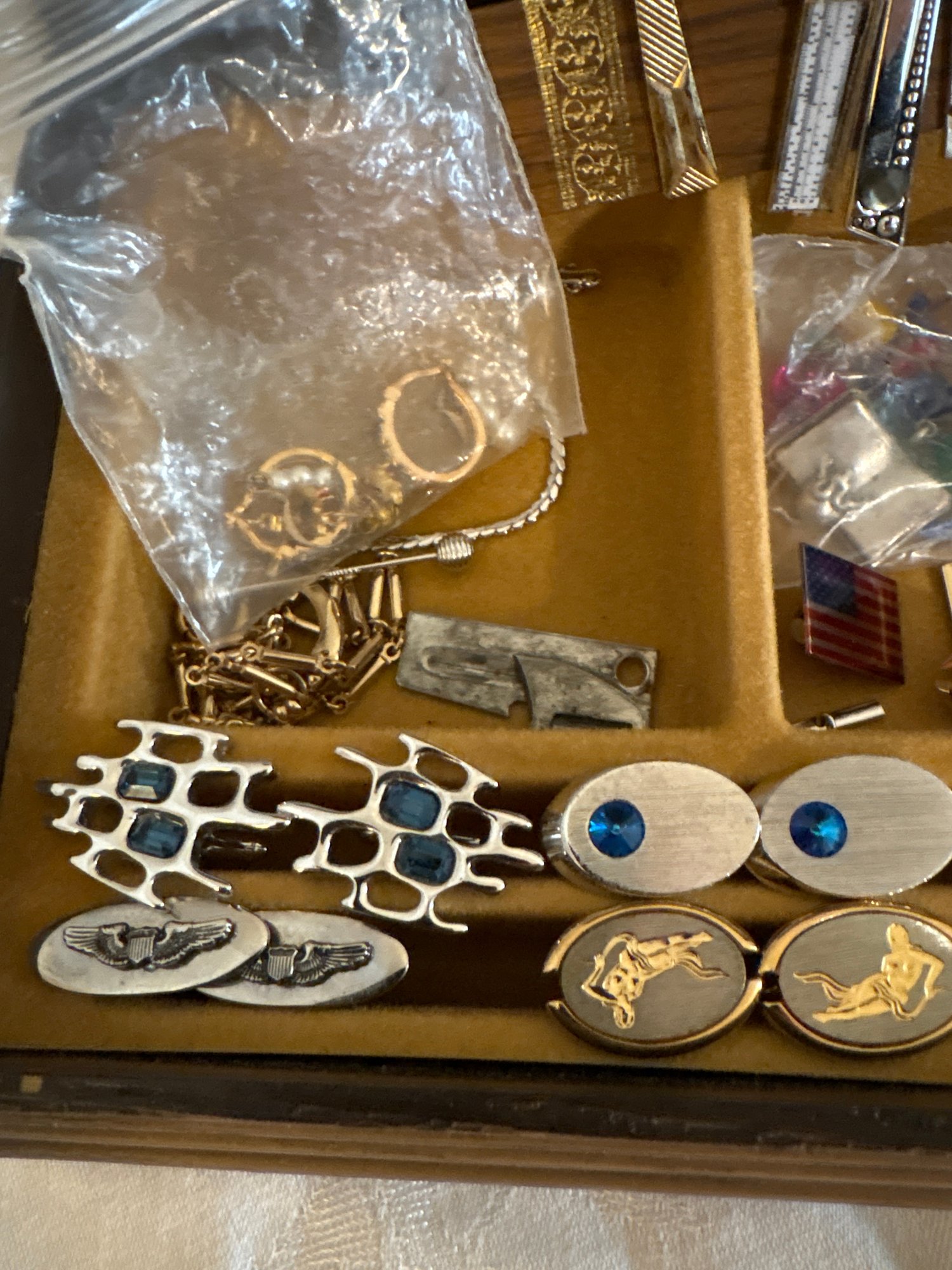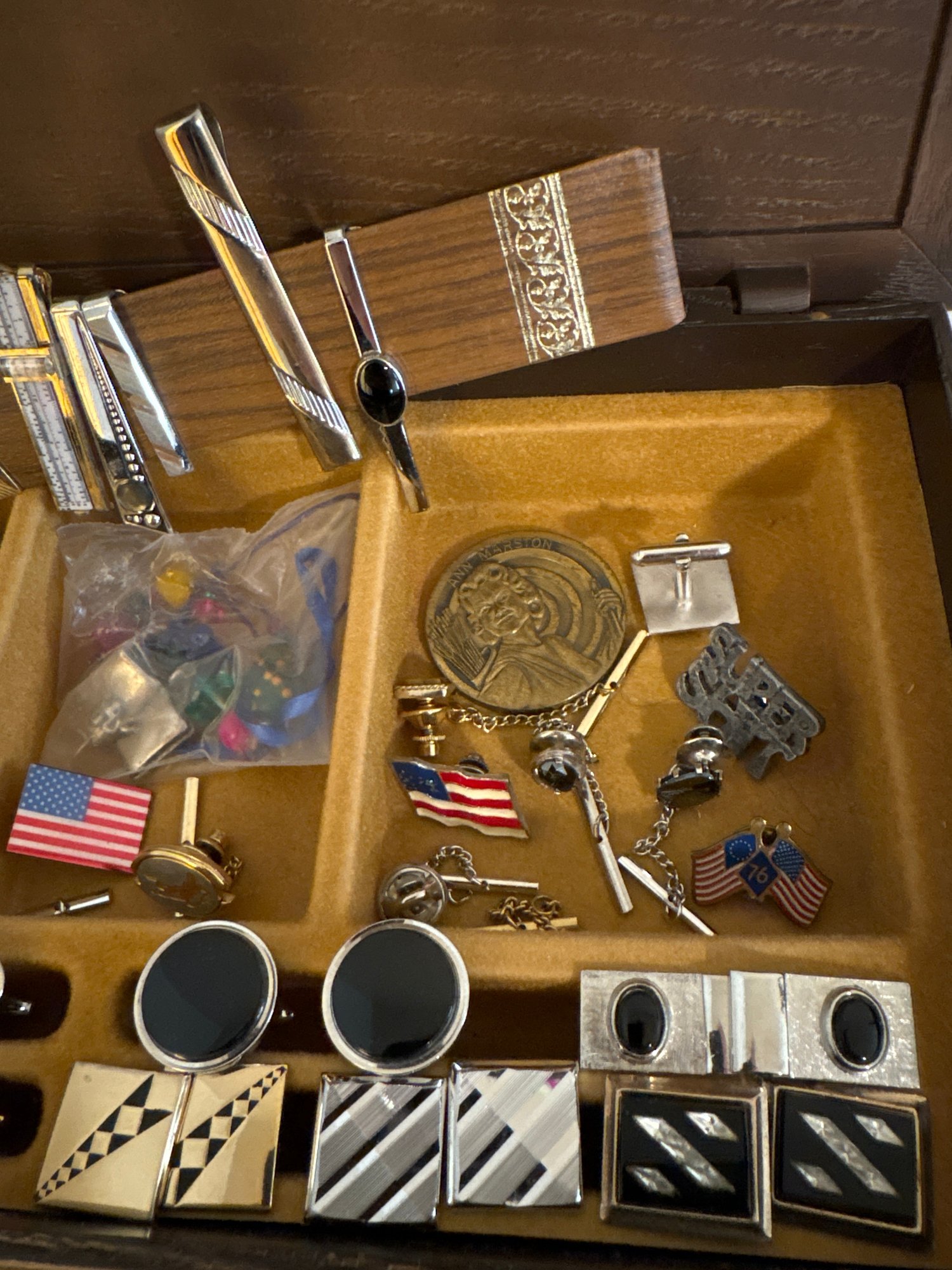 Awesome box with cufflinks and titans and more! Most tie bars are “Swank” brand.