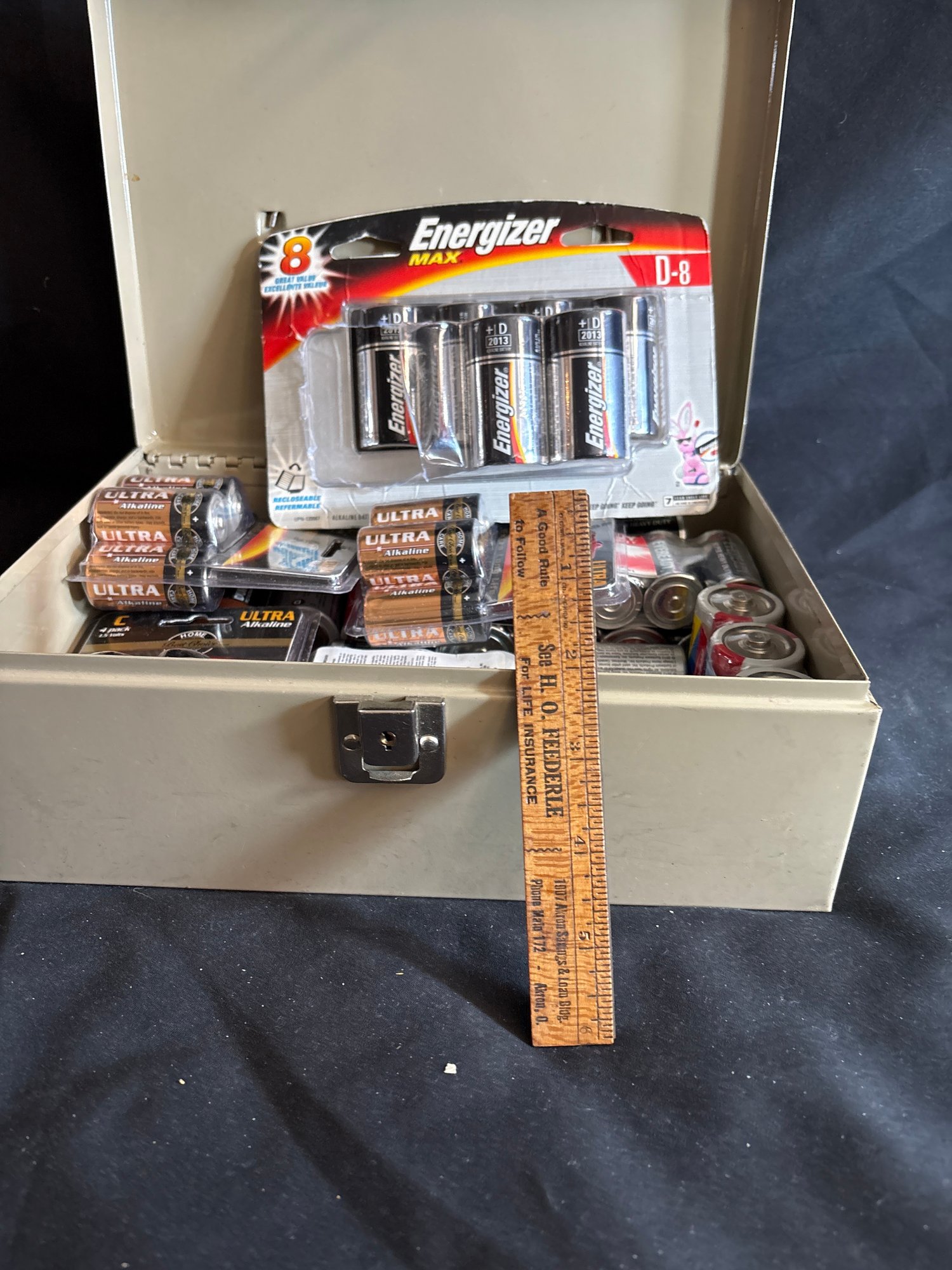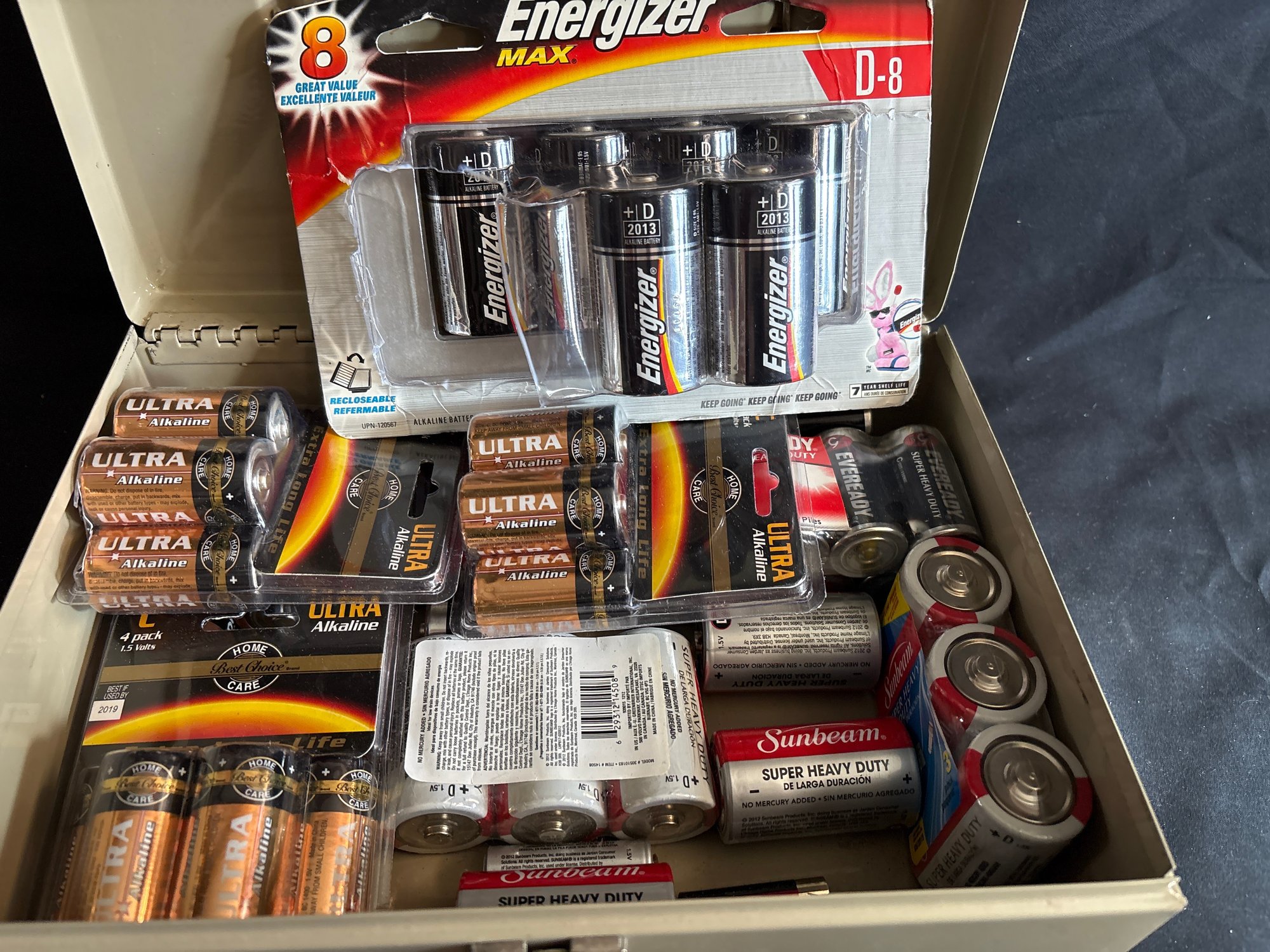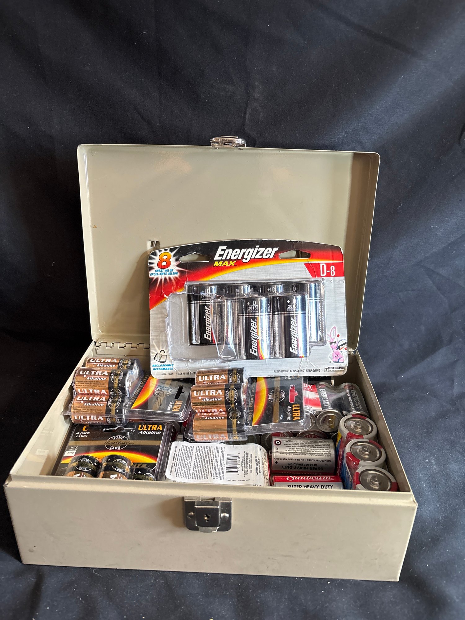 No key for box batteries mostly in packages but untested c d aa aaa