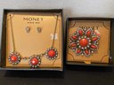 Necklace, earrings, and brooch.
