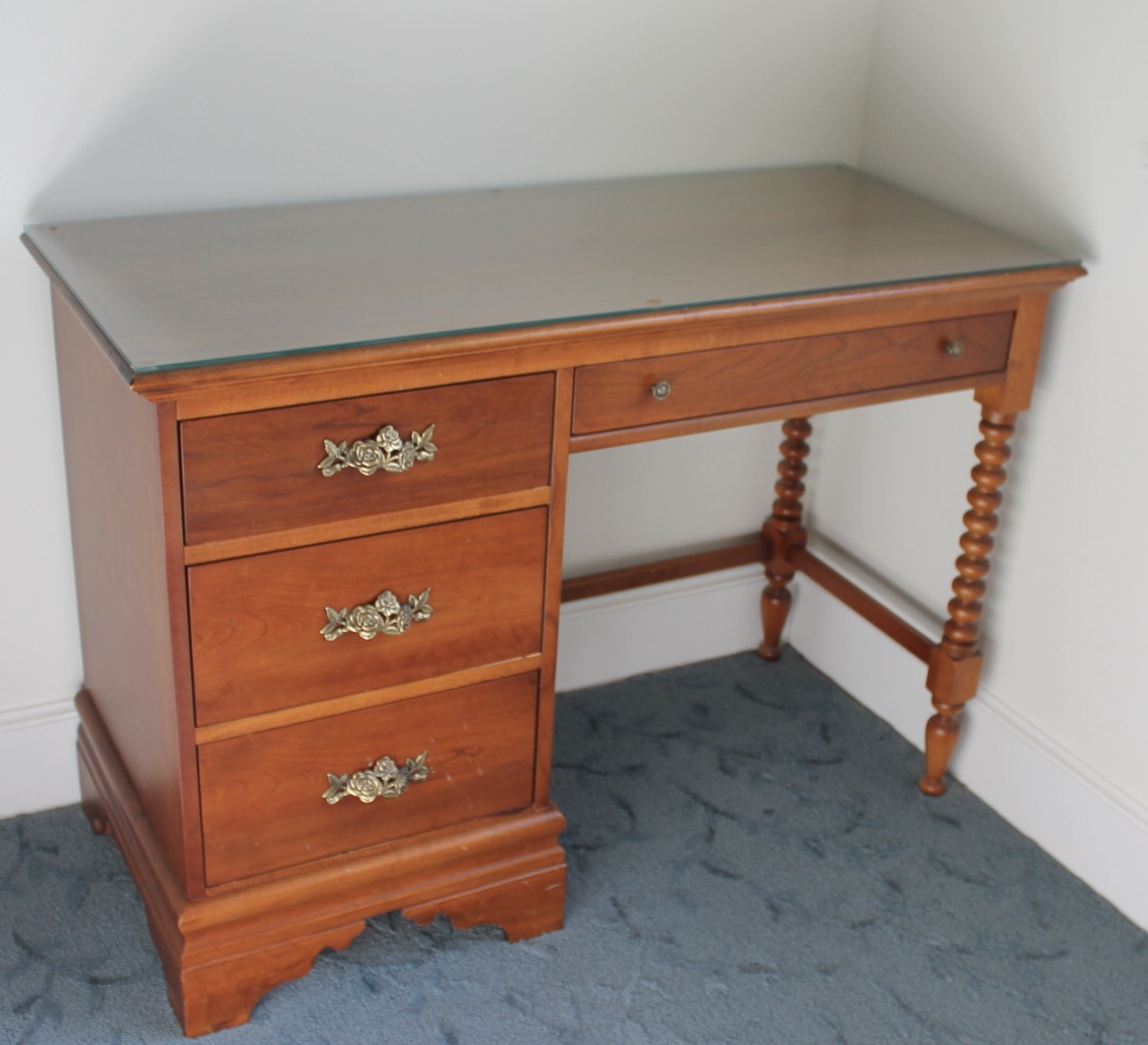 Glass topped student desk.