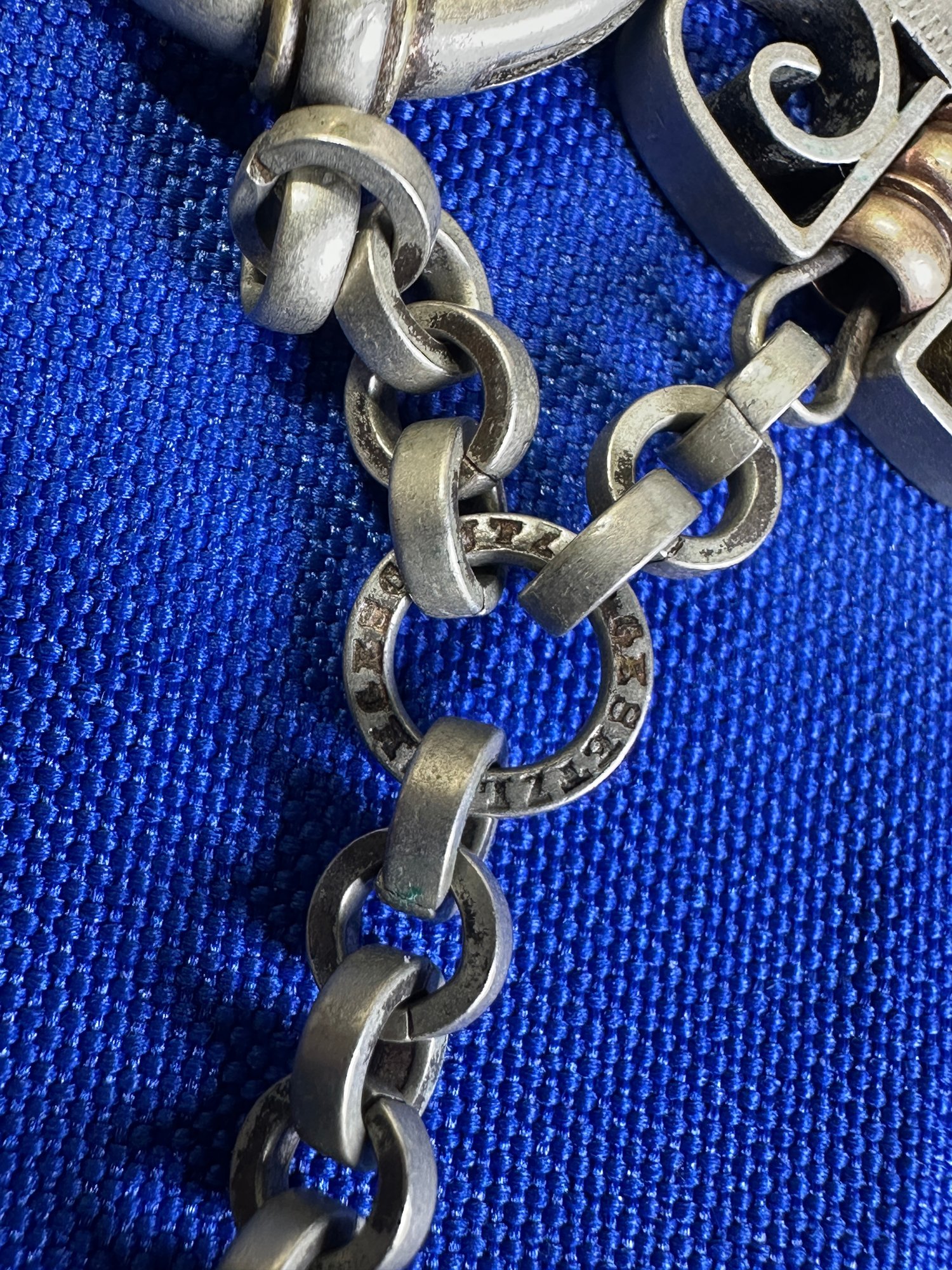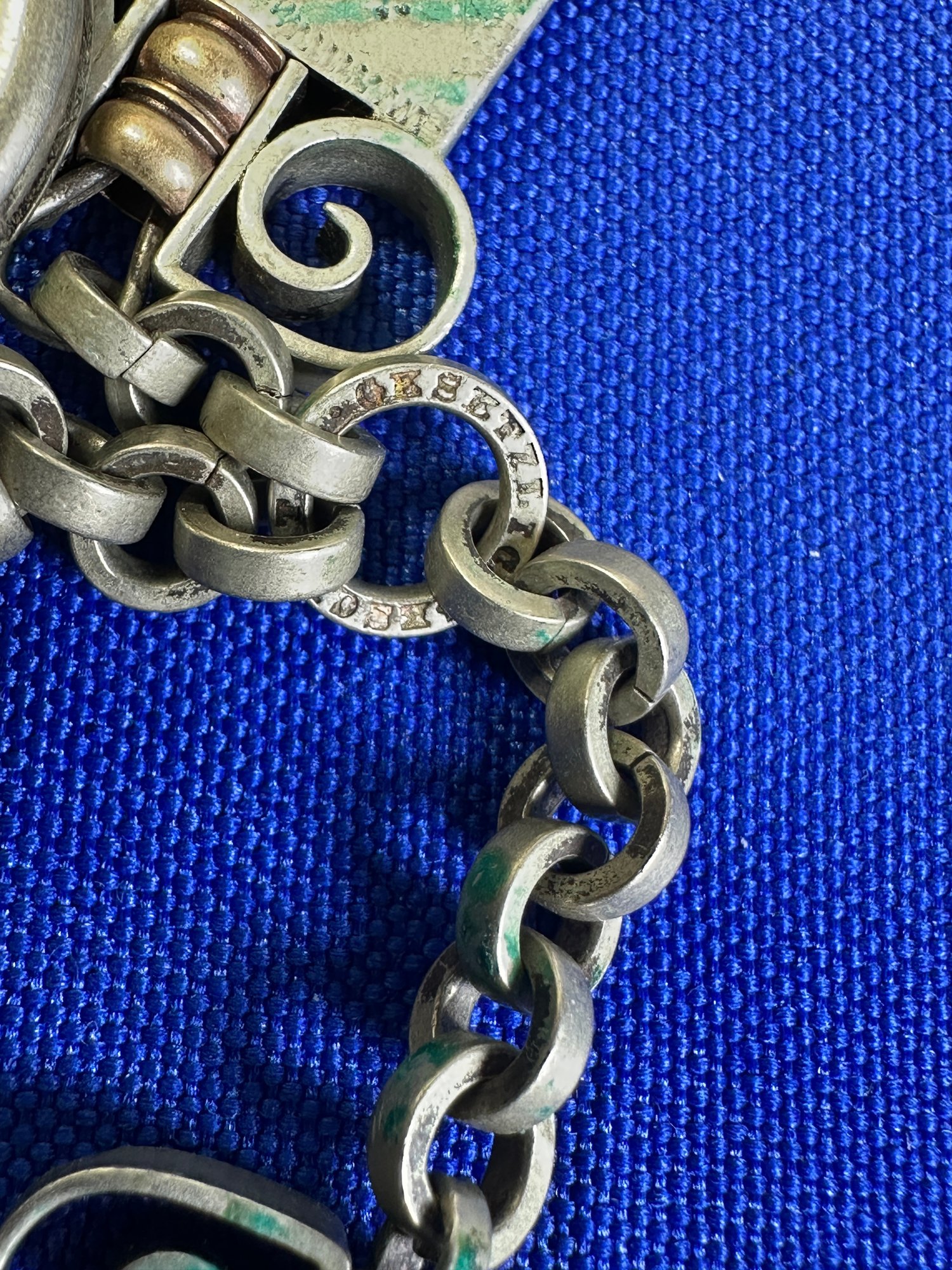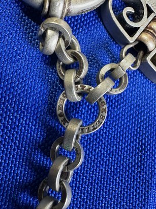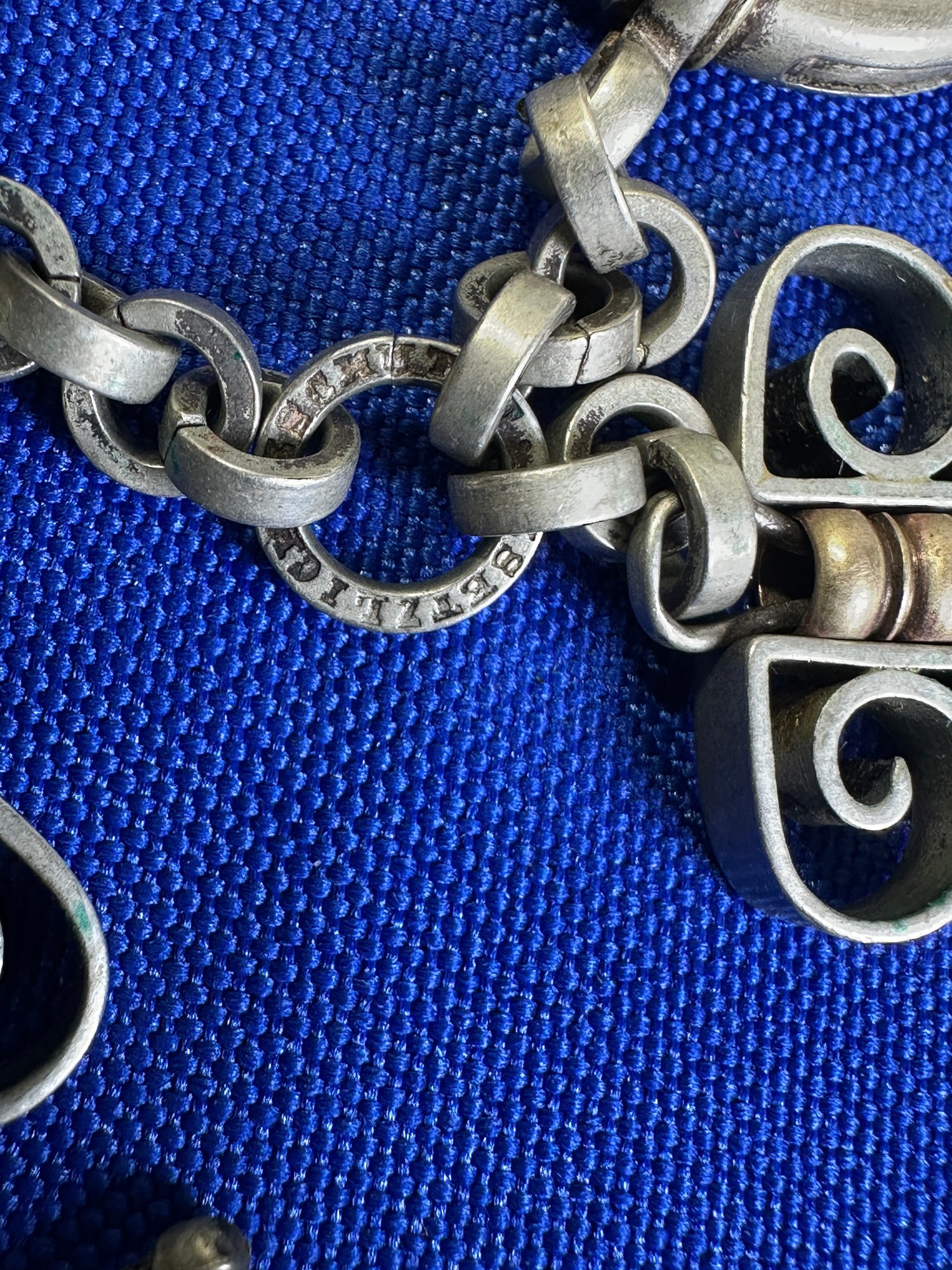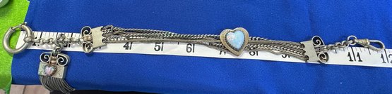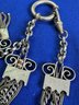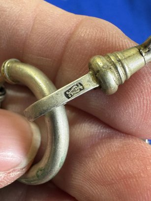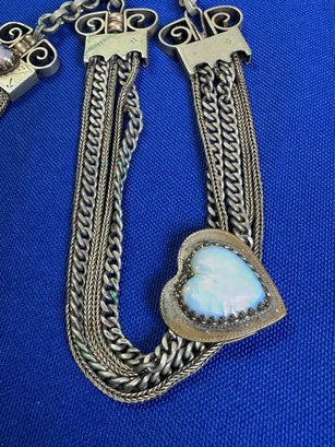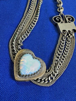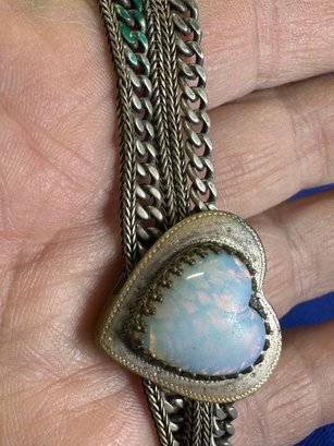 The female equivalent of an Antique Victorian silver Albertina (a type of watch chain worn by women) with opal-set heart fobs and a tassel.