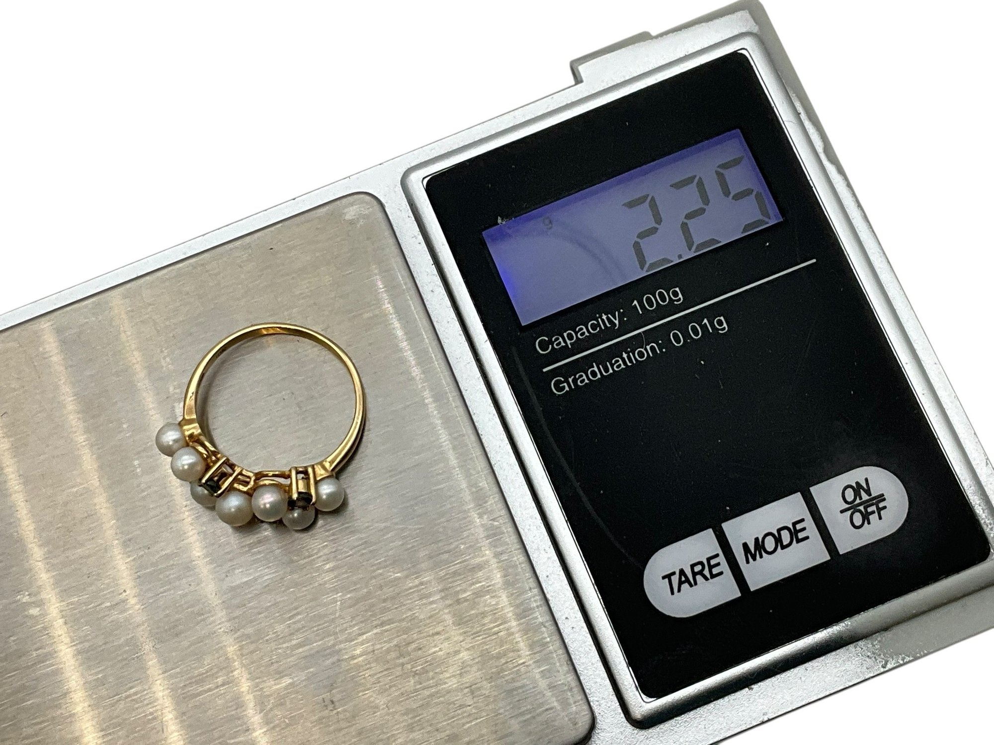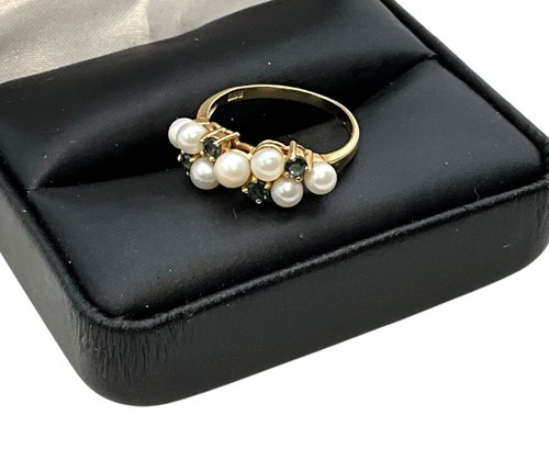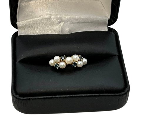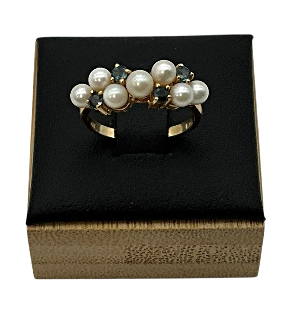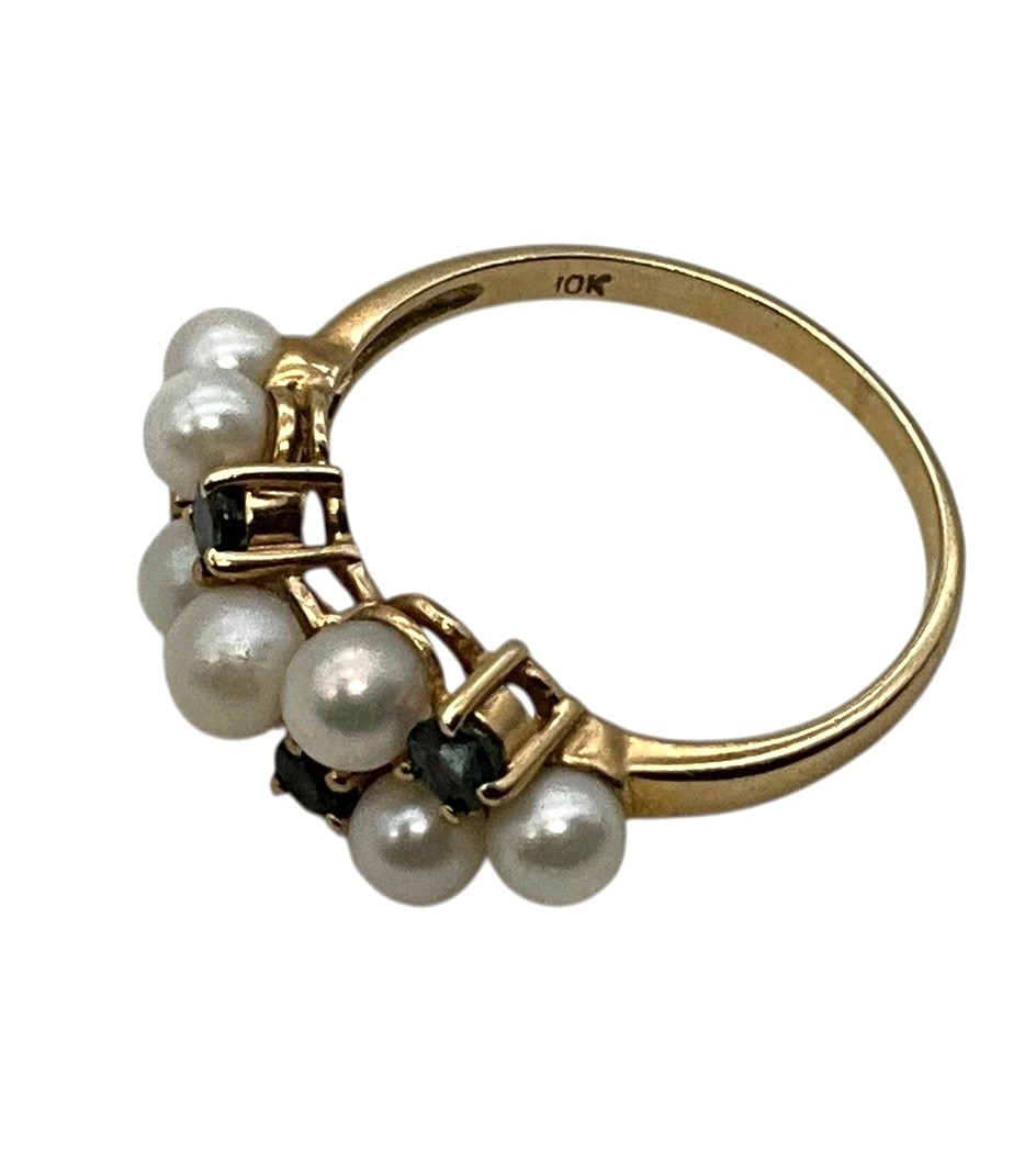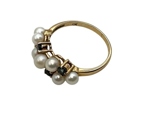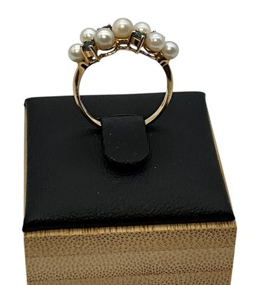 Lot 16DD- 10K Gold With Sapphires & Pearls Ring Size 6 - WE SHIP!! Weight In Photos