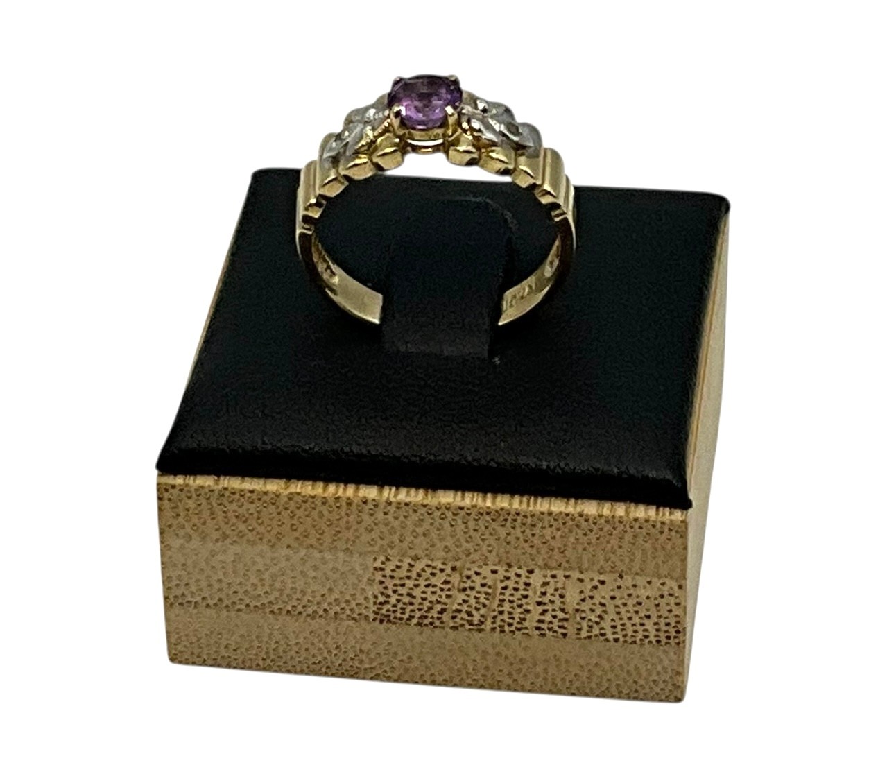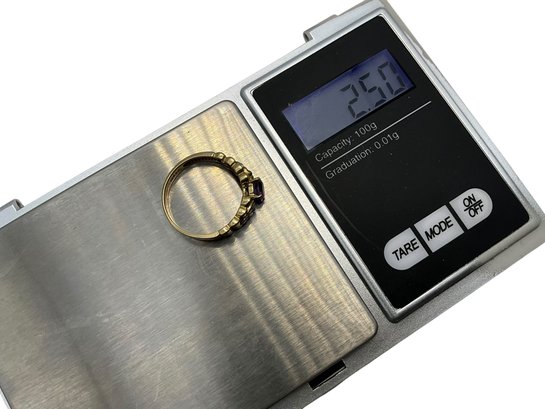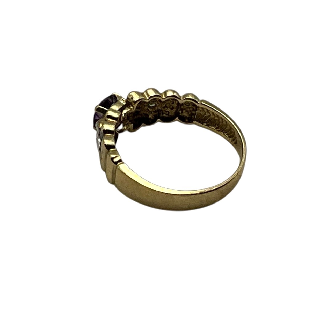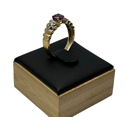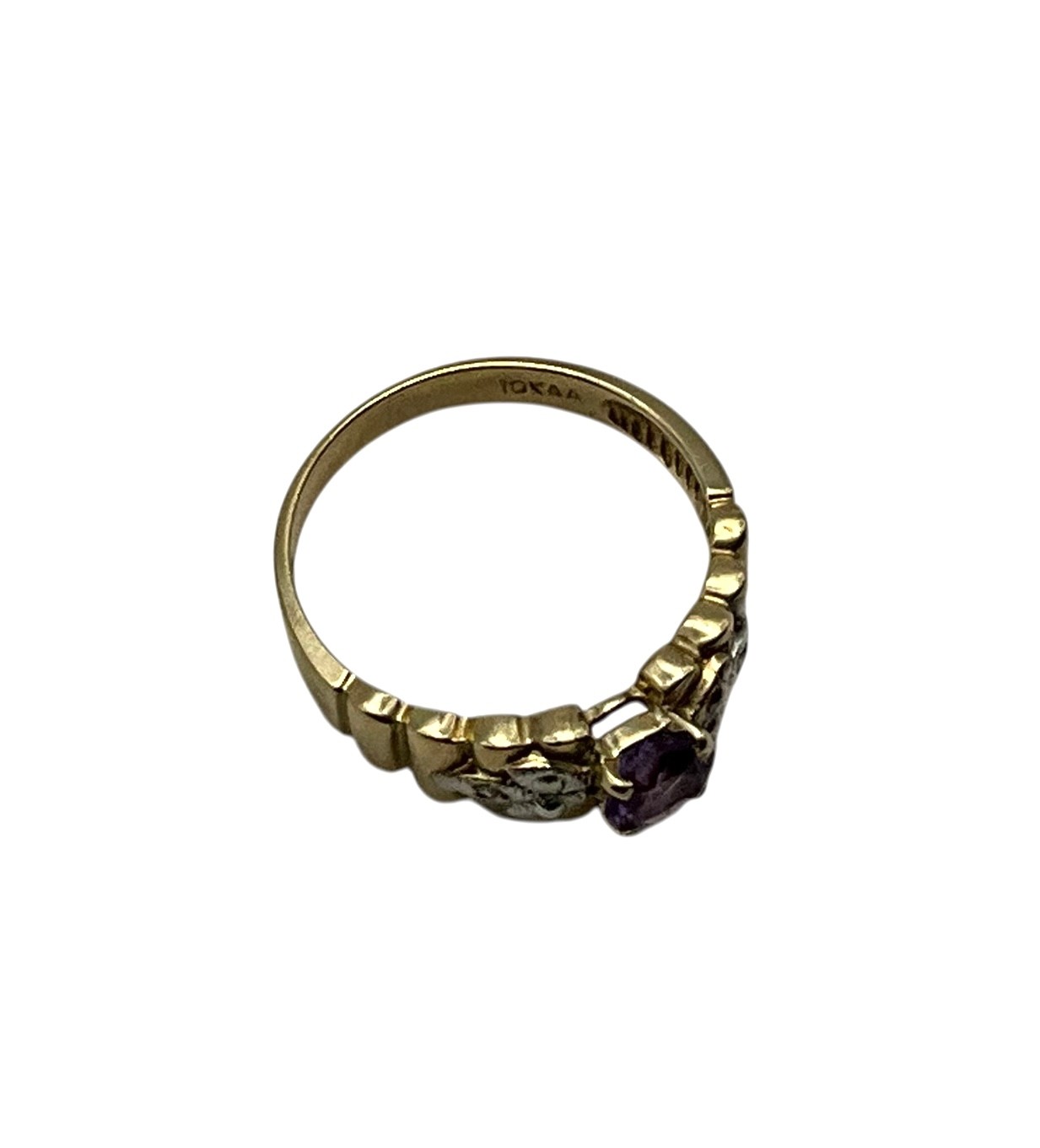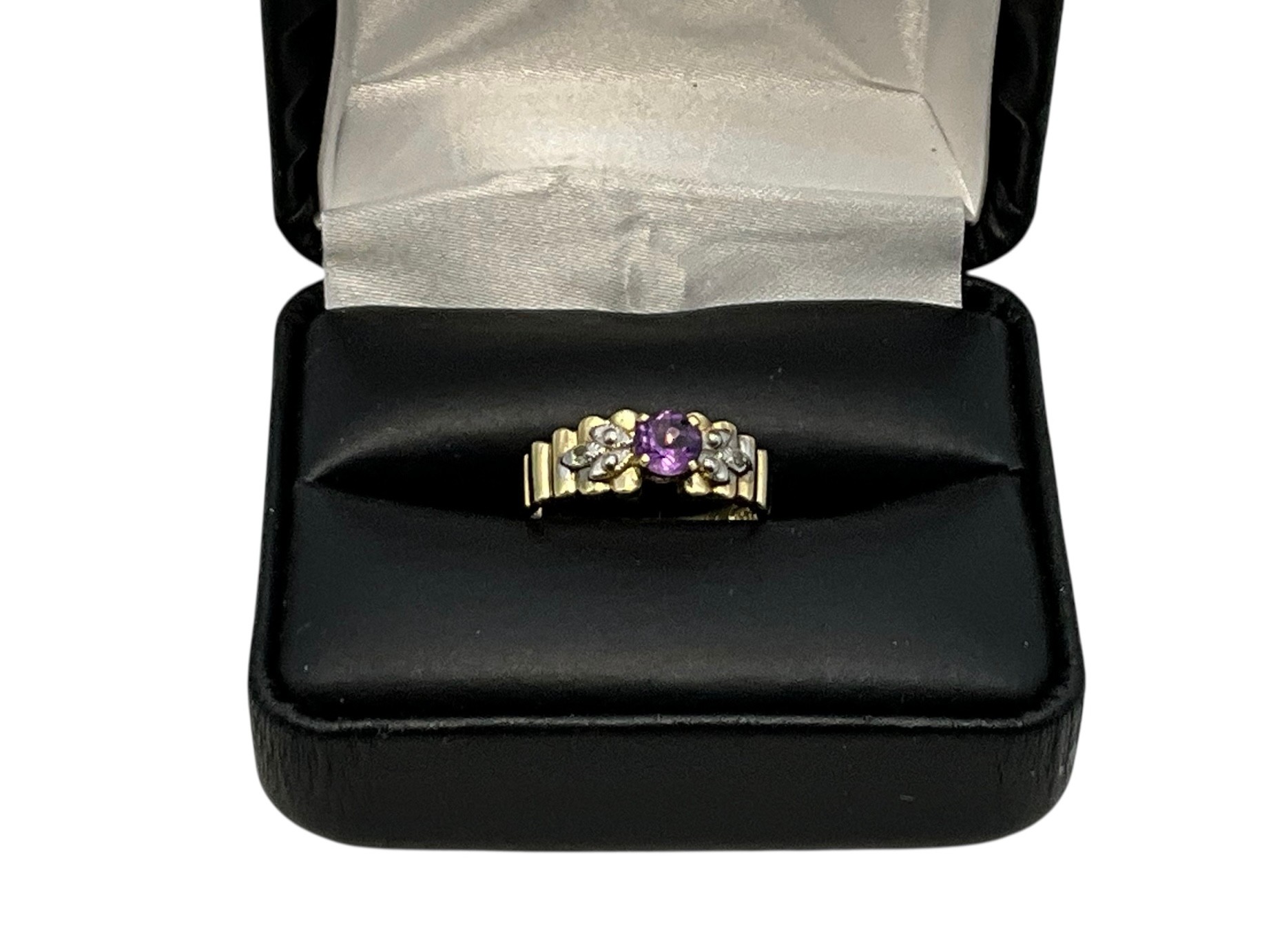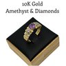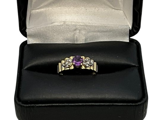 Lot 18DD- 10K Gold With Amethyst & Diamonds Ring Size 7 - WE SHIP! Weight In Photos