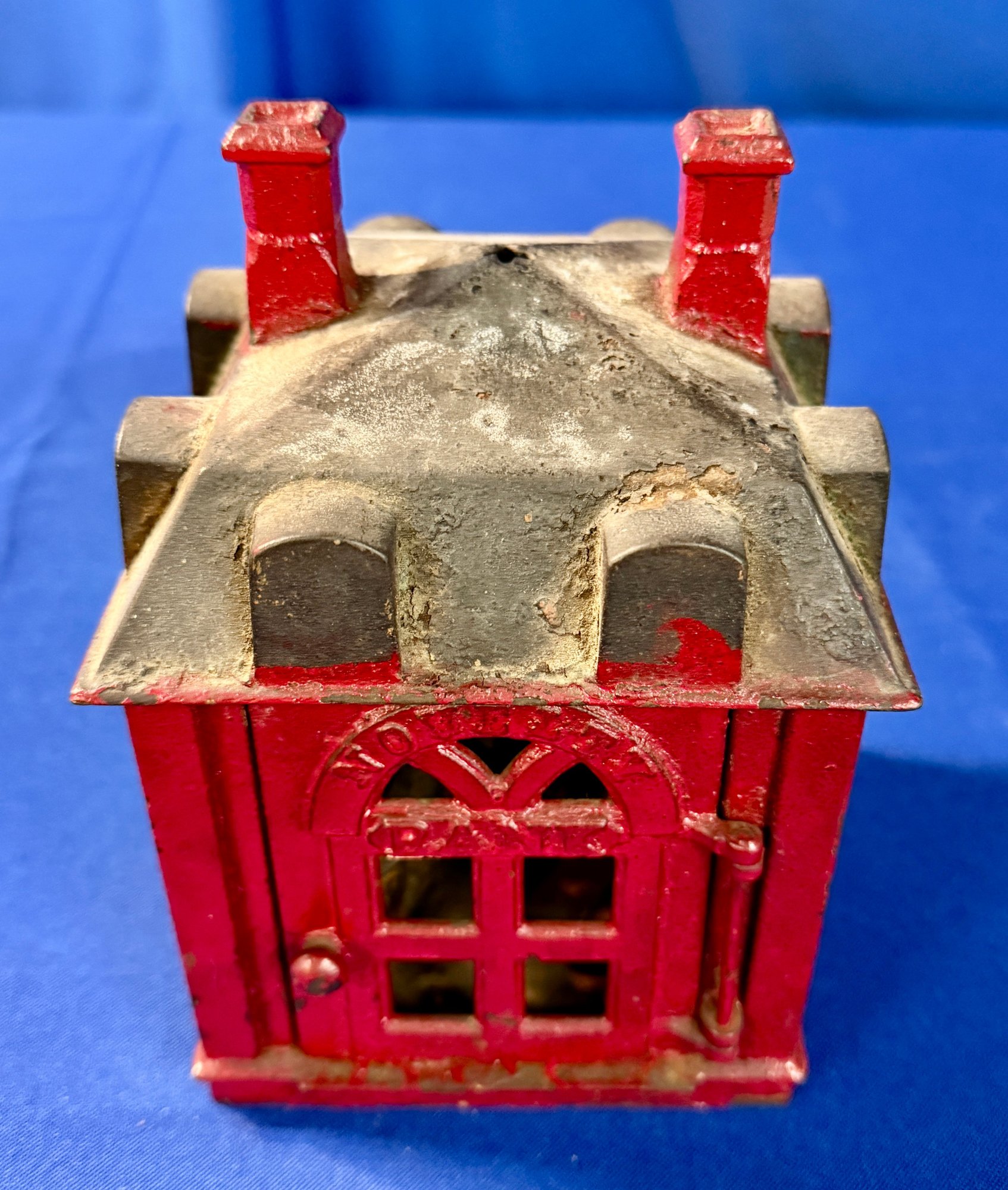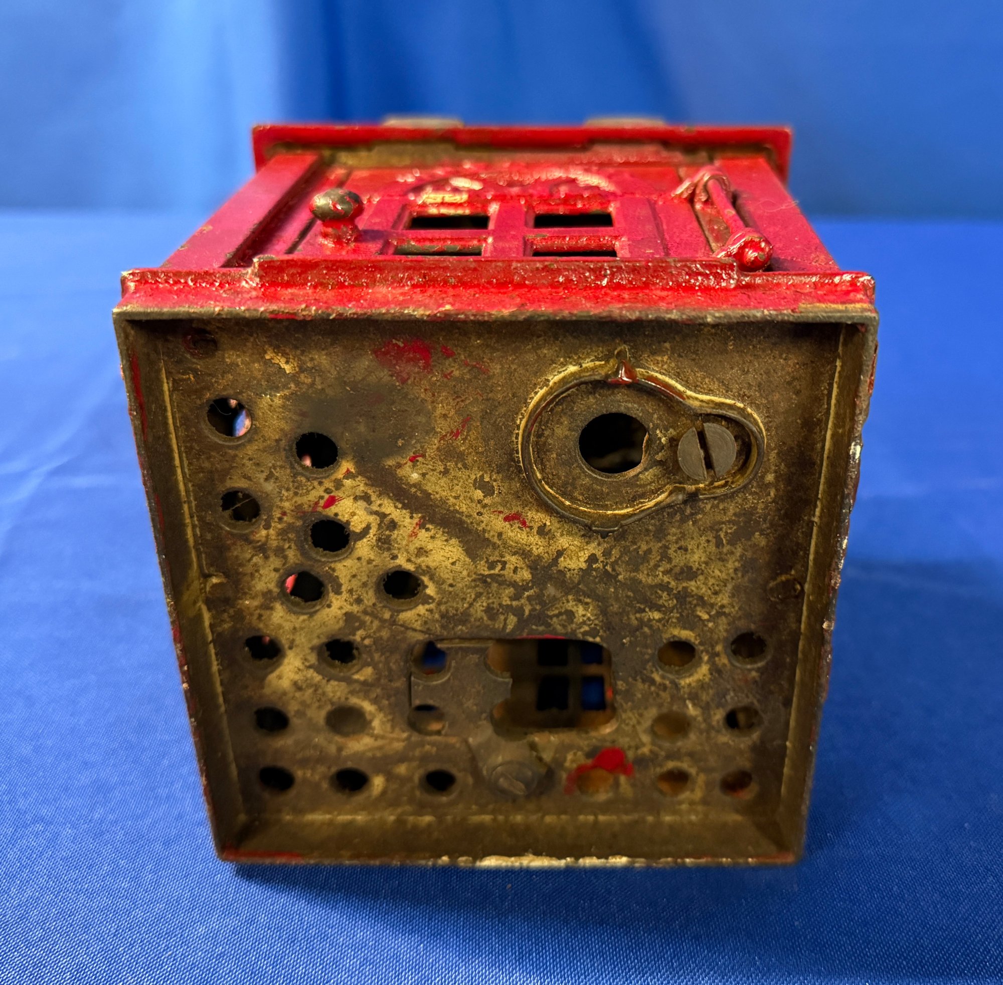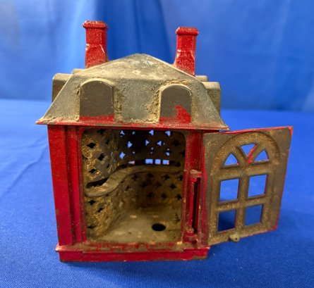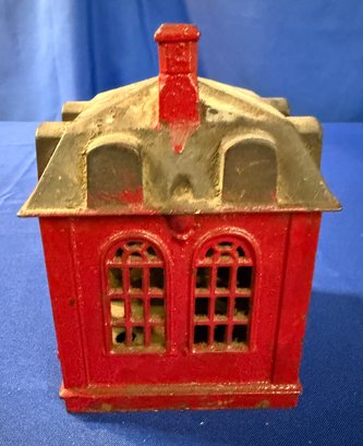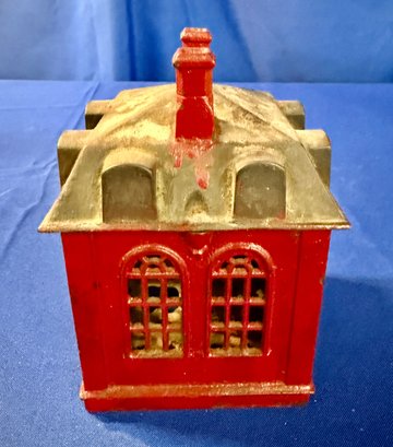 Antique Cast Iron Novelty Bank missing man inside to receive coin and measures 6.5" x 5" x 5".