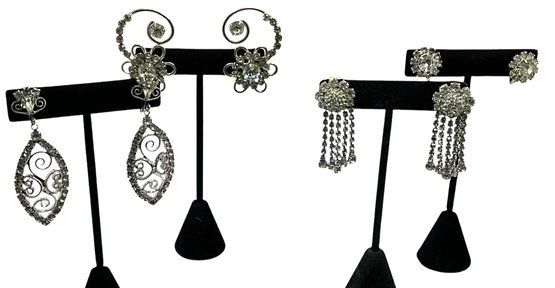 Clip on earrings 4 pairs crystals and rhinestones.