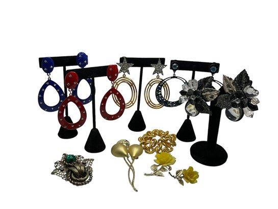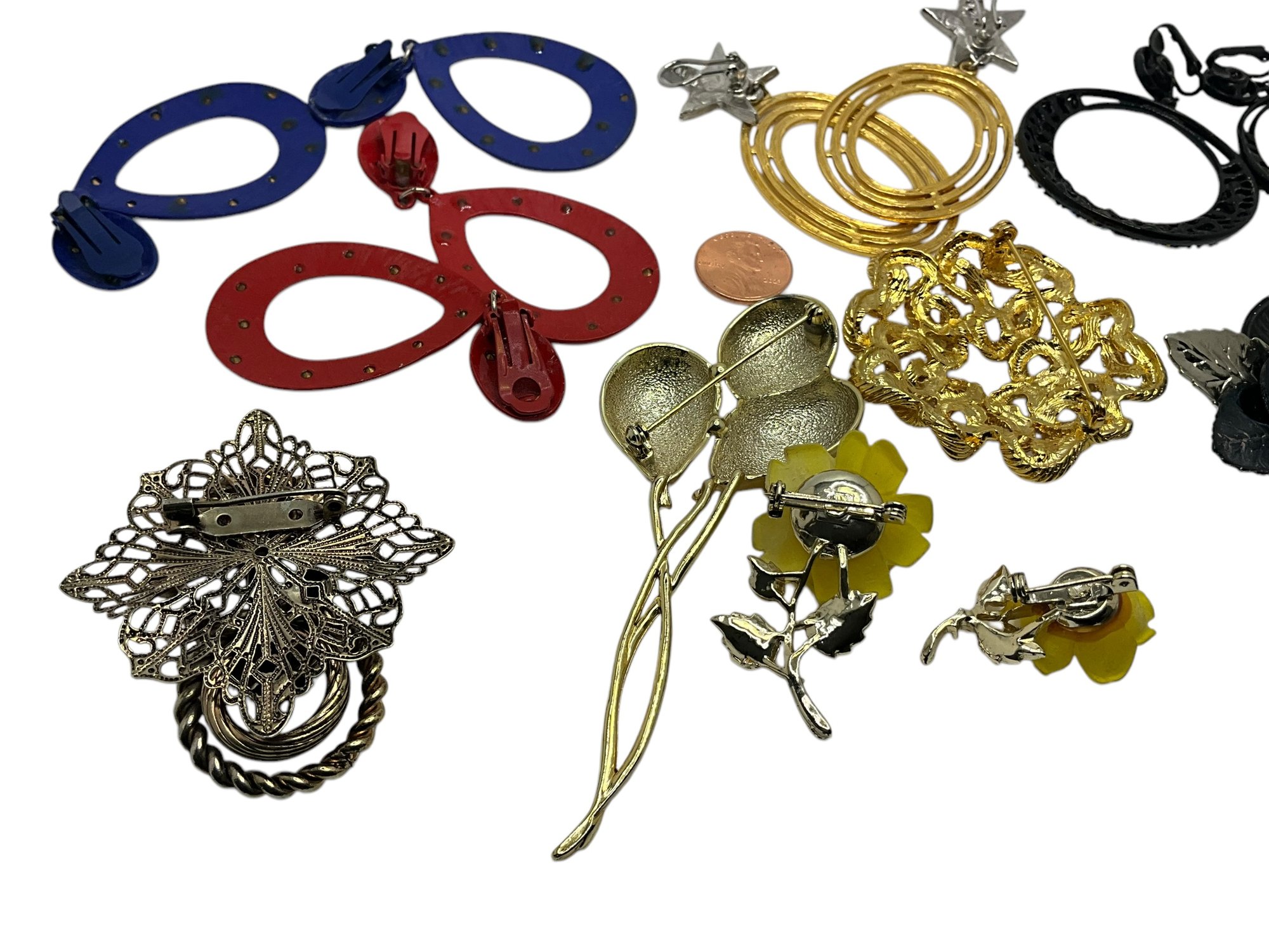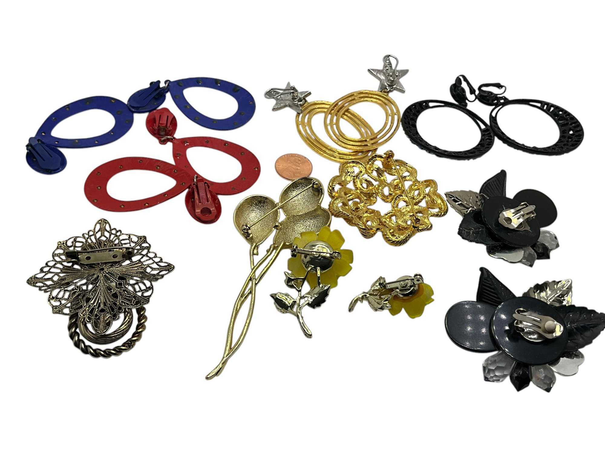 Vintage jewelry 5 pairs of clip on earrings and 5 pins total 10 pieces.