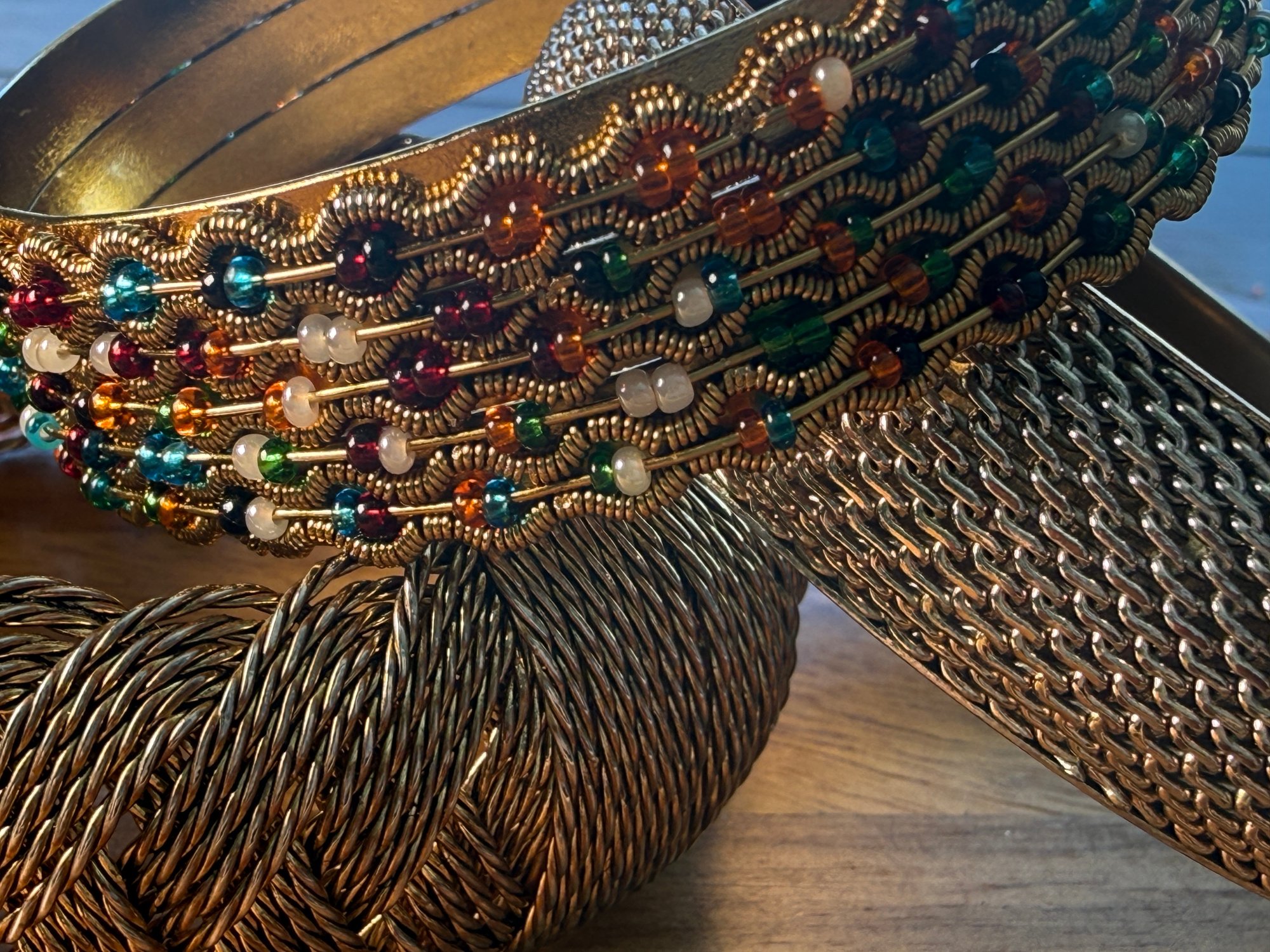 Measures Mesh and braided 10 inches and beaded 9 inches.