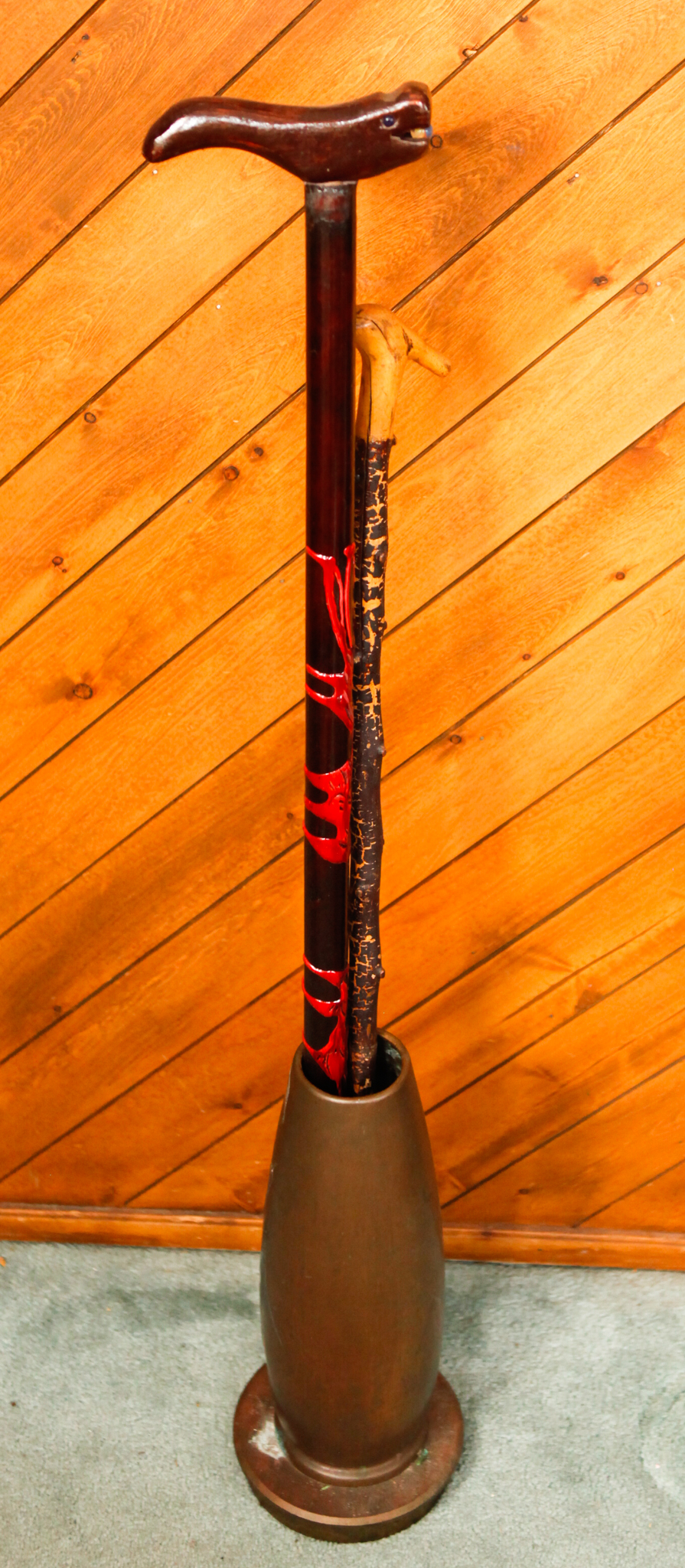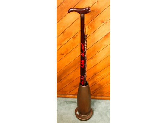 A Pair Of Antique Walking Canes W/ Umbrella Stand Included