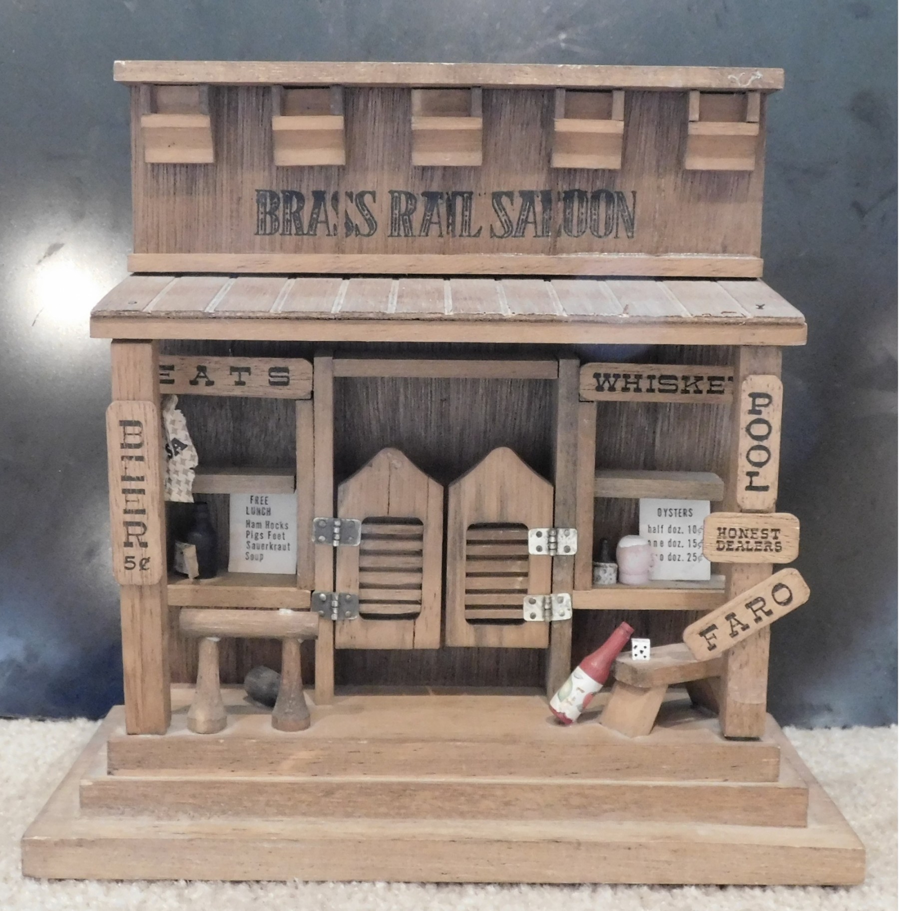 Description Make your table spread truly dynamic and attention-getting with this wood tabletop decor accessory modeled to resemble an old bar/saloon.