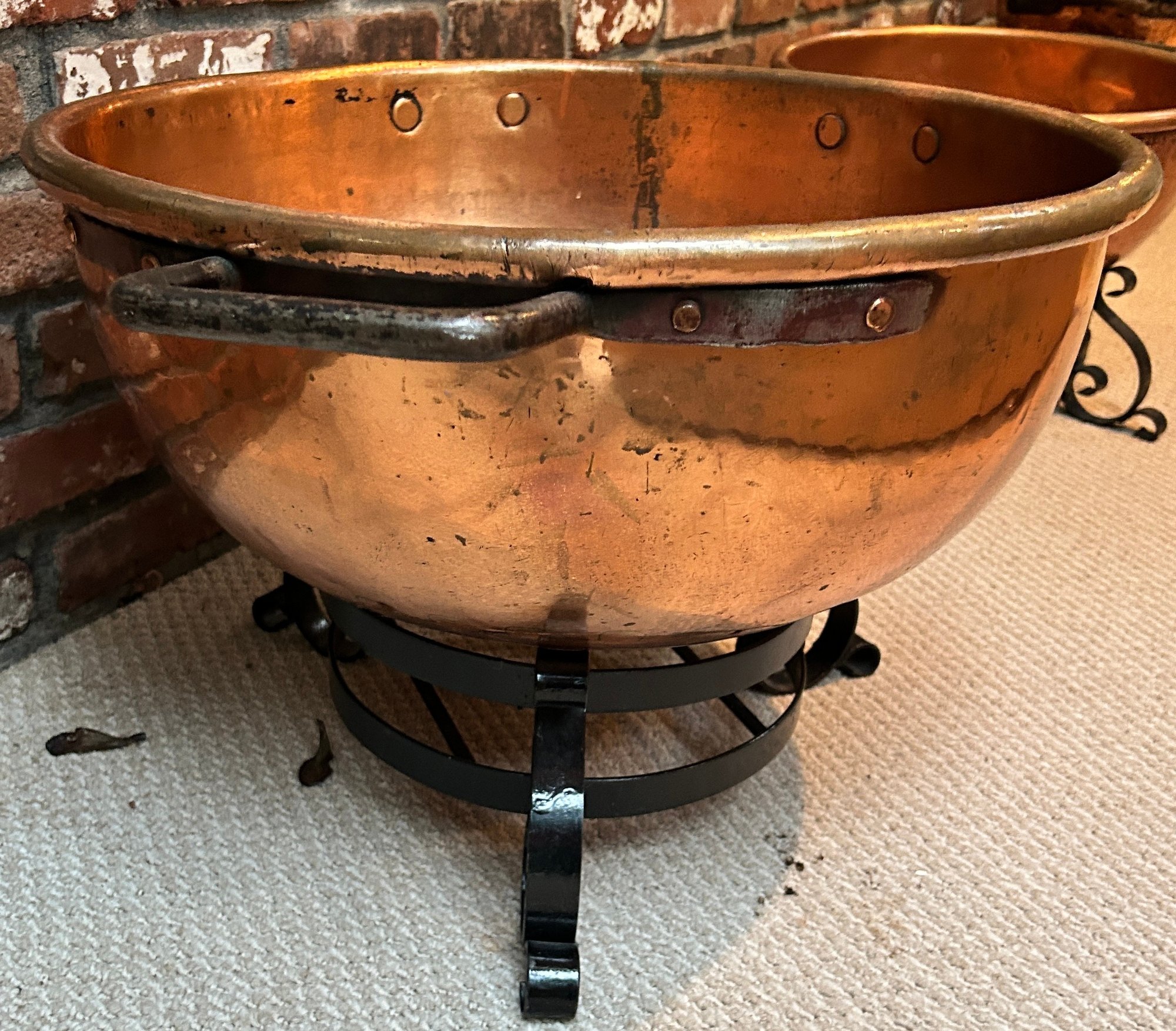Antique Copper Candy Kettle With Iron Stand, 2pcs