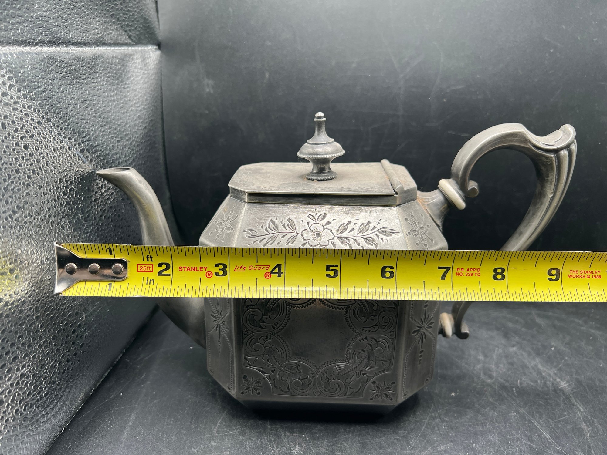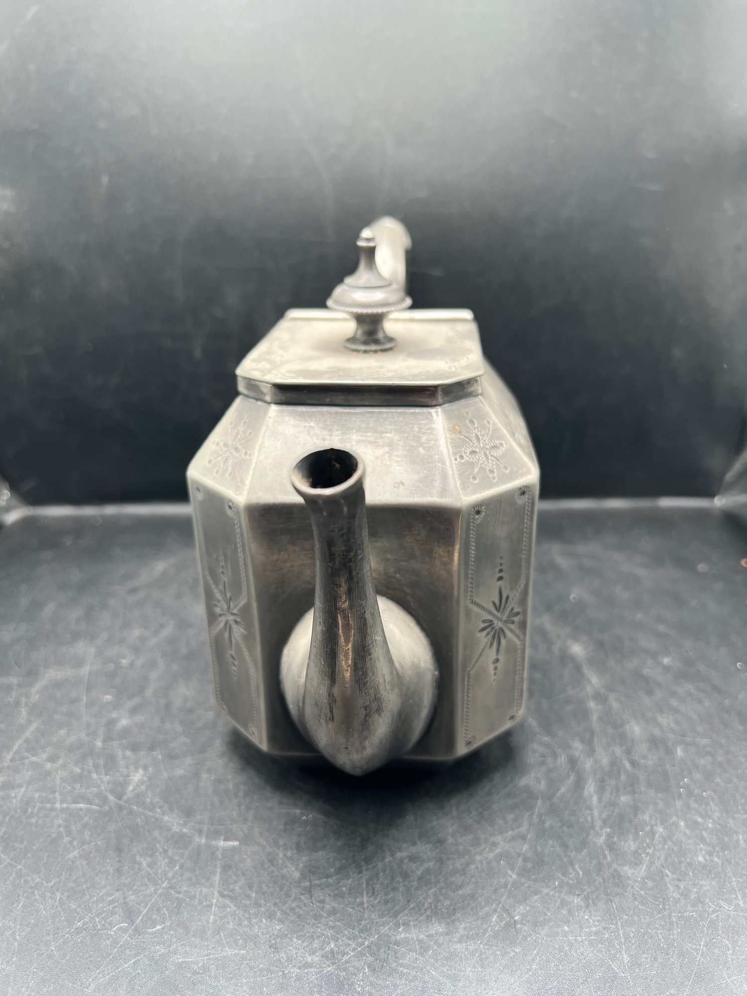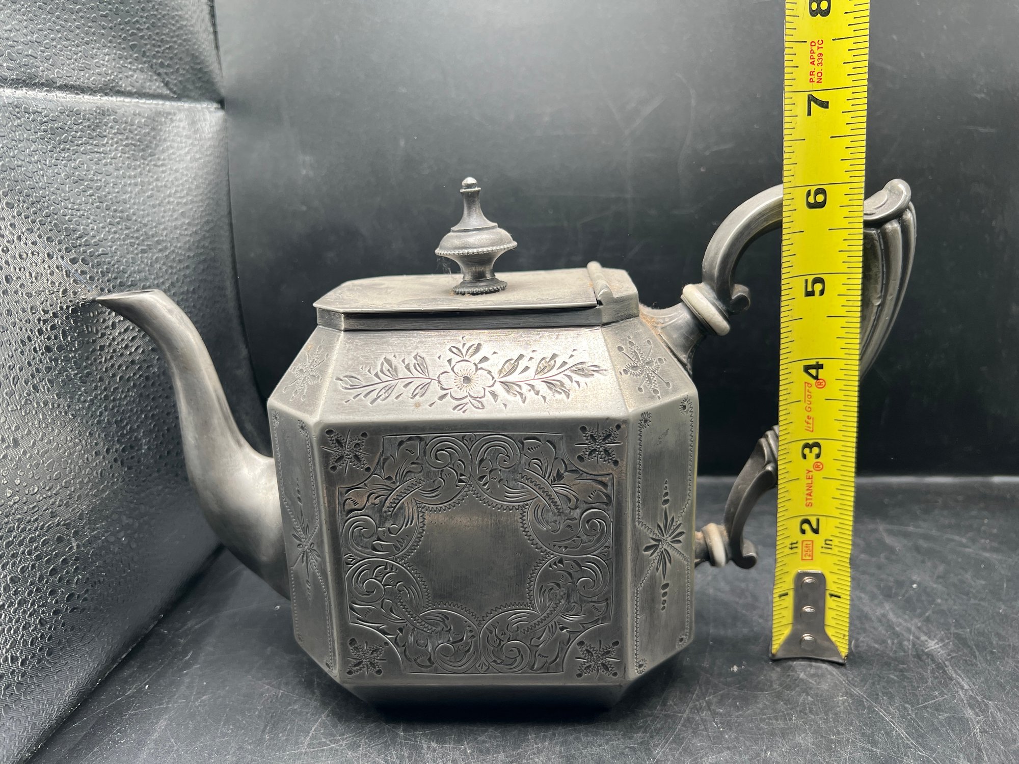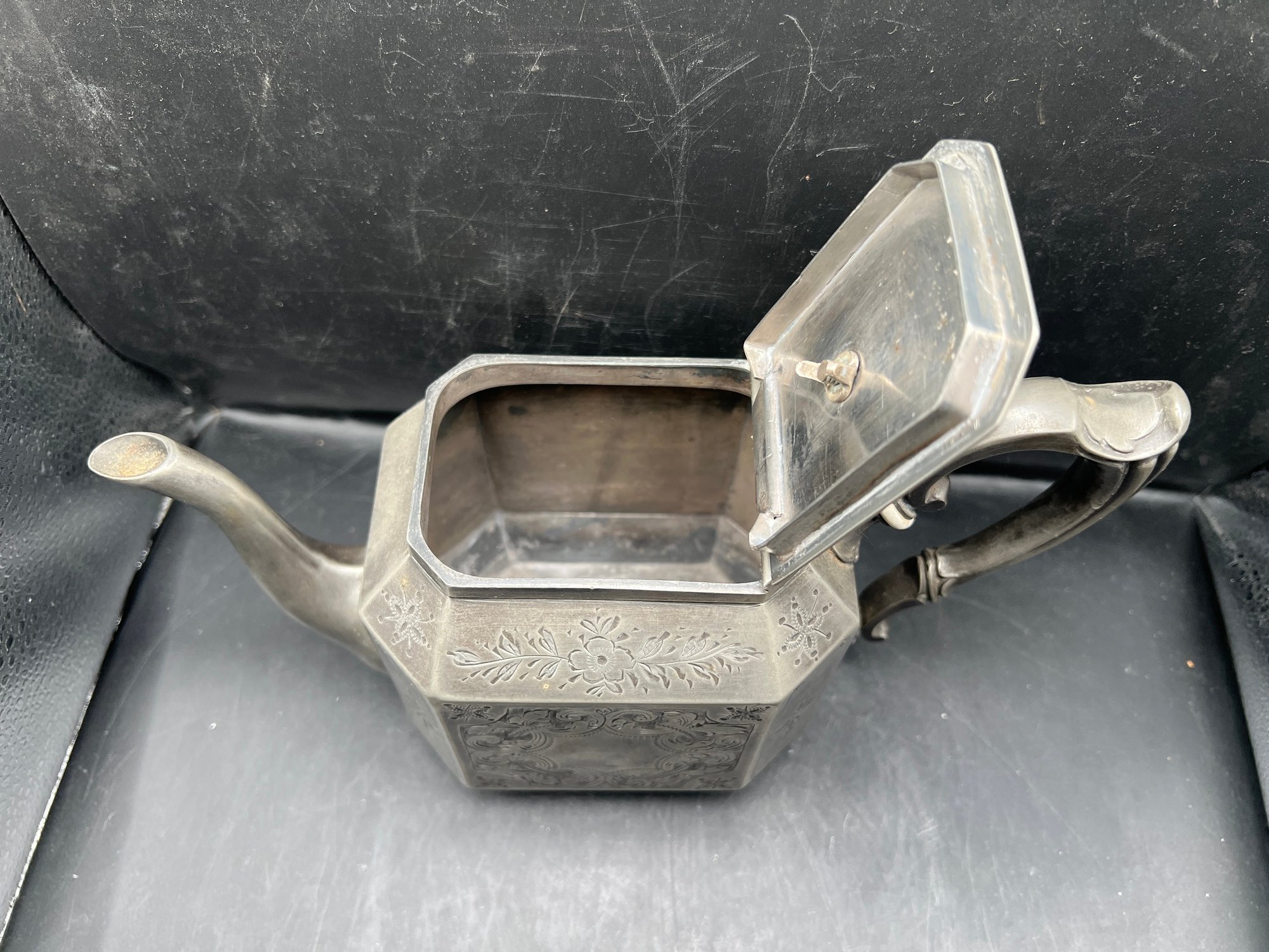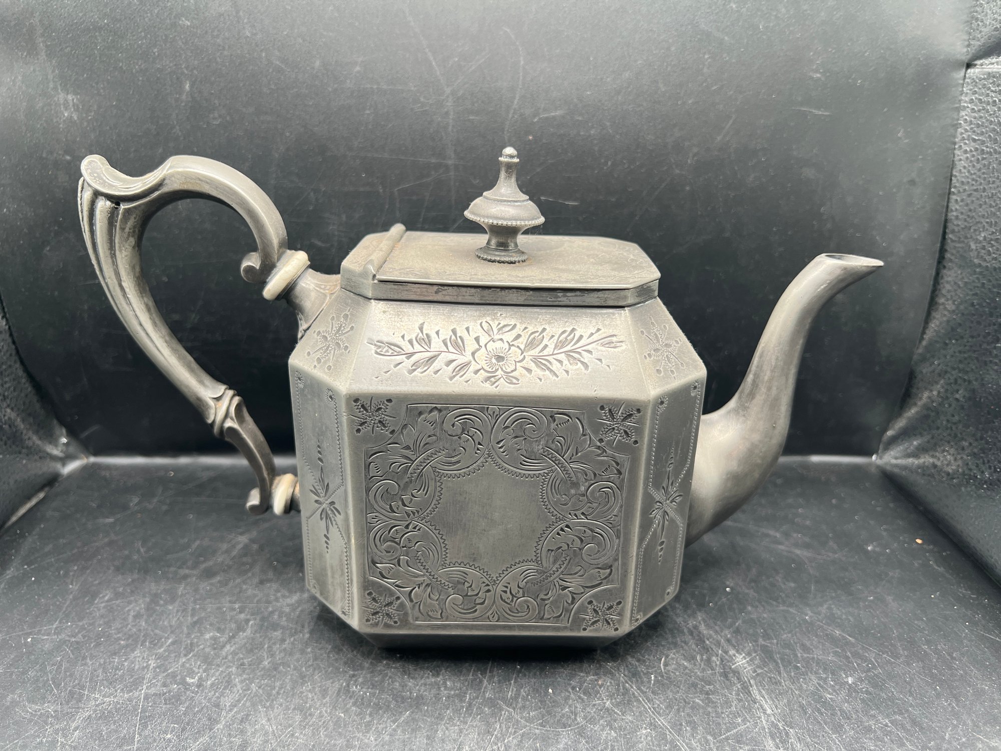 Antique Victorian Superior Electro Plate Octagonal Teapot with Engraved Floral Details