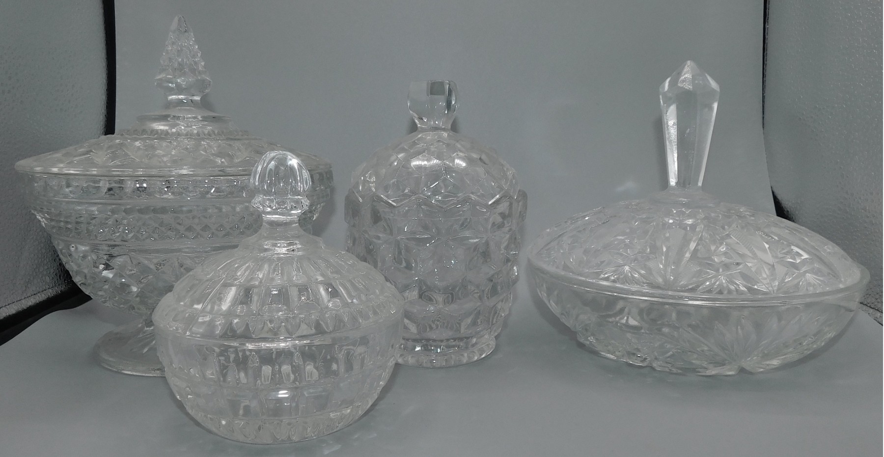 this lot contains 4 candy dishes with lids