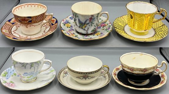 Assorted Fine Bone China Teacup & Saucer Sets - 12 Pieces Total - made in England