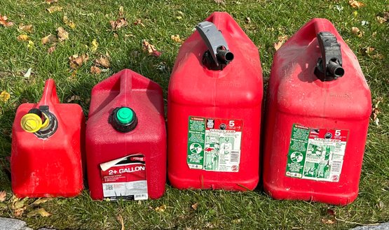 Assorted Plastic Gas Cans - 1.5 Gallon, 2 Gallon & 5 Gallon Cans, Empty, 4 Pieces