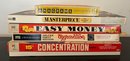 Assorted Vintage board Games: Scrabble, Masterpiece, Easy Money, Aggravation, Concentration, 5 games