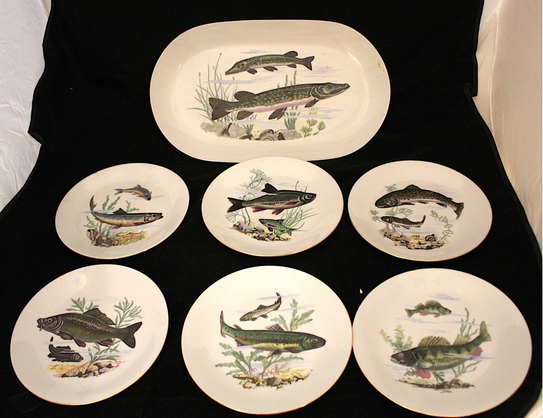 Ba Aria, Germany Porcelain Fish set Of 6 With 1 Serving Platter (112)