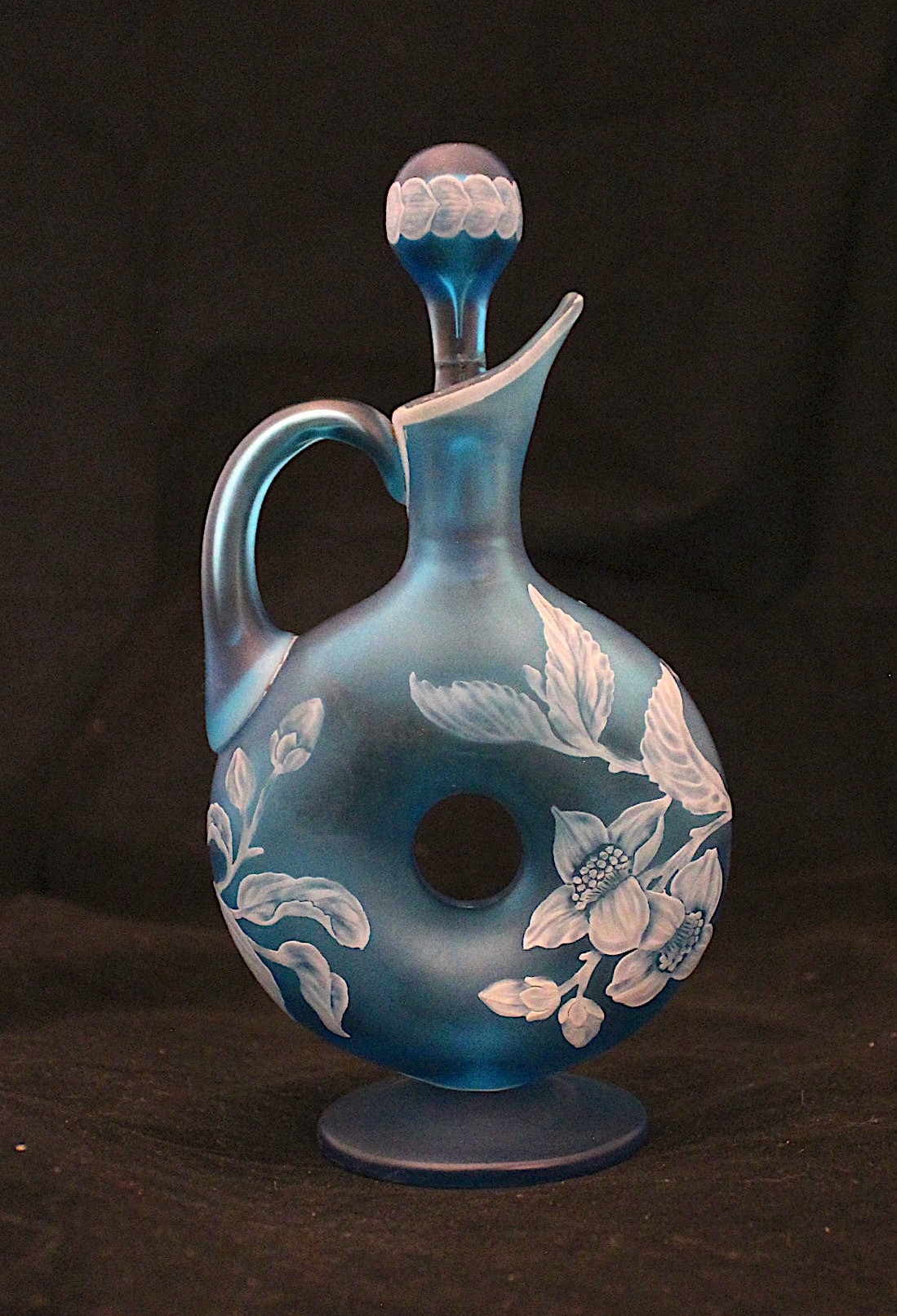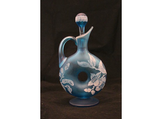 Small Blue Frosted Glass Decanter (193)