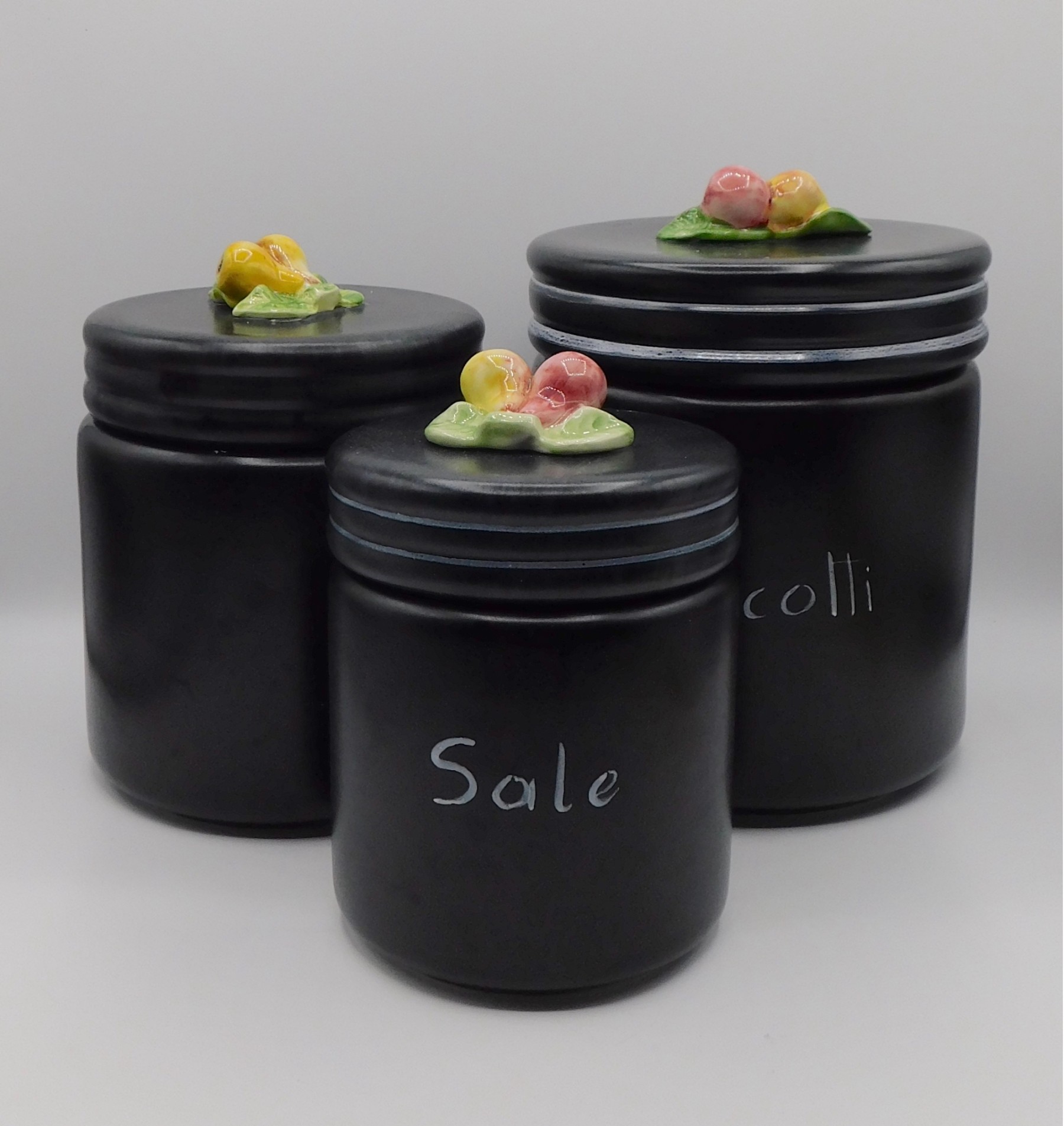Black With Painted Fruit Kitchen Storage Canisters - Set Of 3