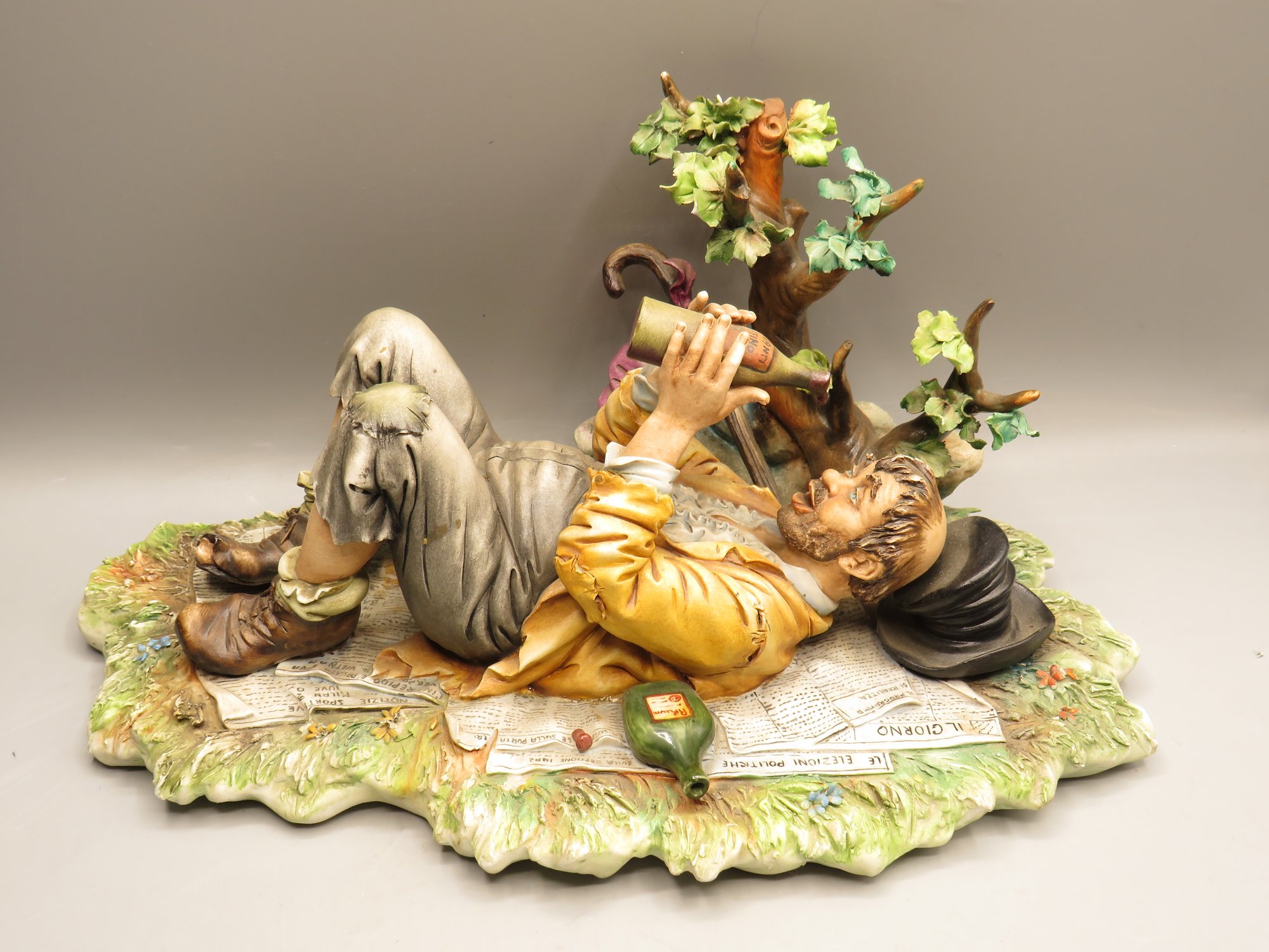 Capodimonte Porcelain Hobo On Newspapers Drinking - Made In Italy