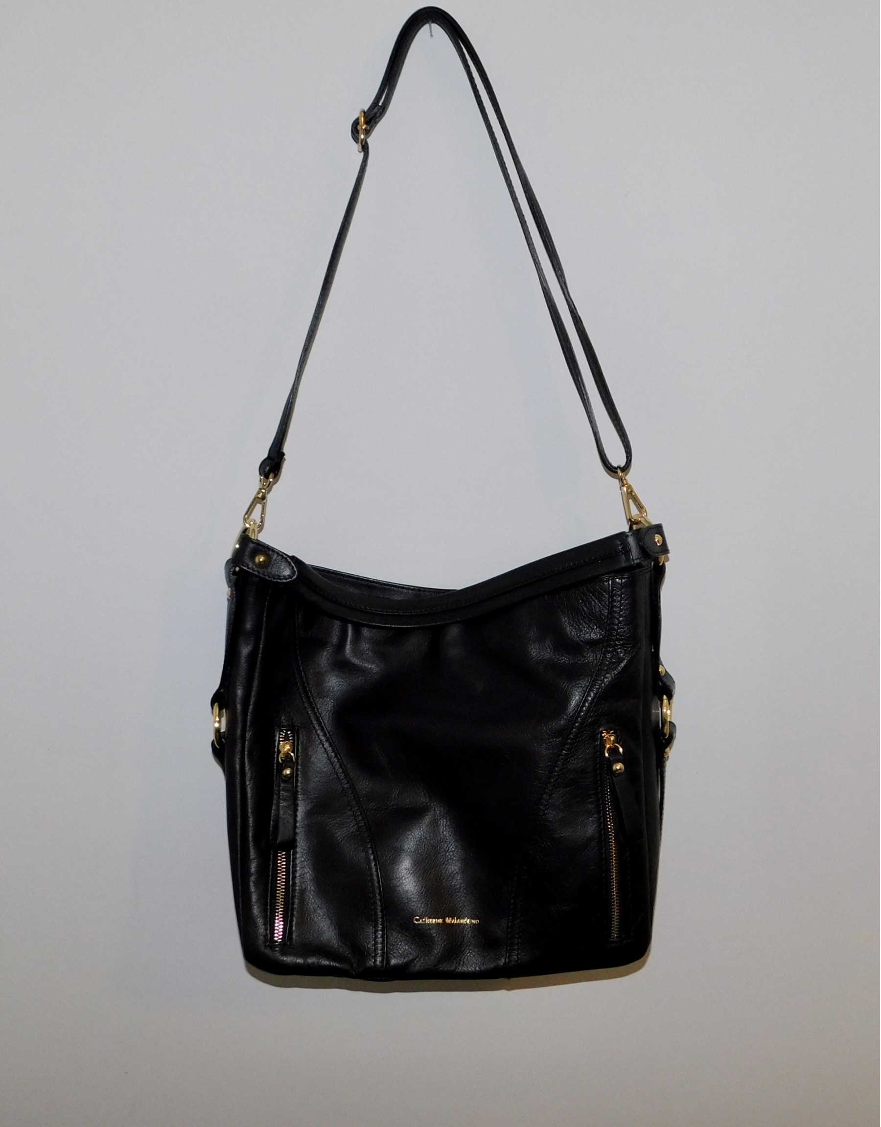 Catherine Malandrino Black Leather Handbag With Adjustable Strap