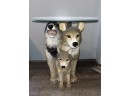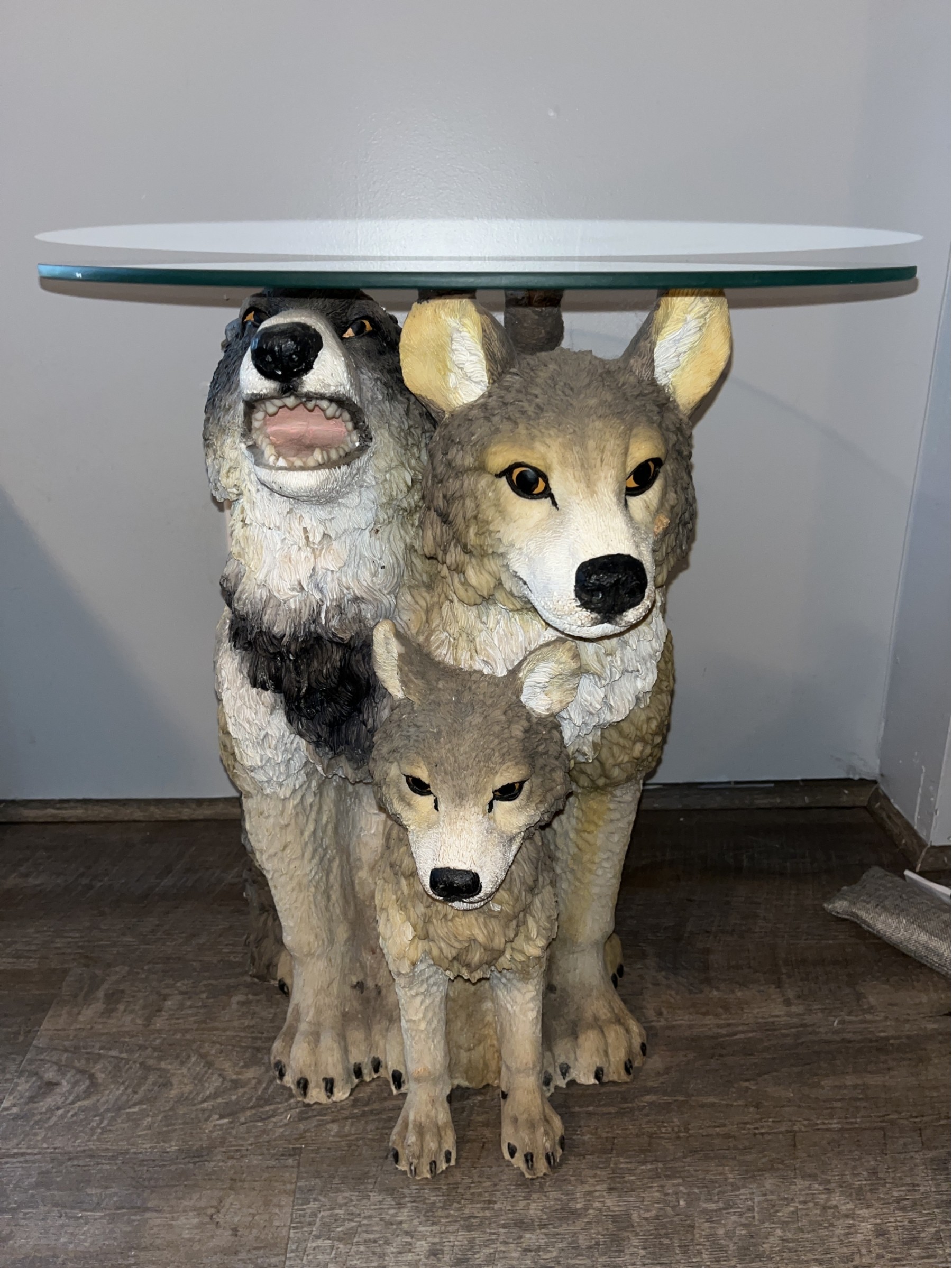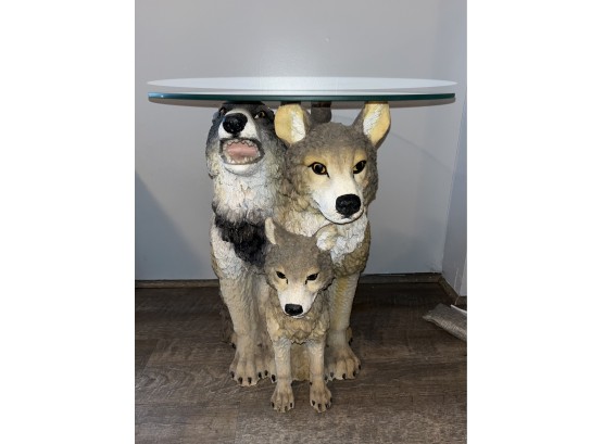Decorative Wolf Style Resin Glass-Top End Table