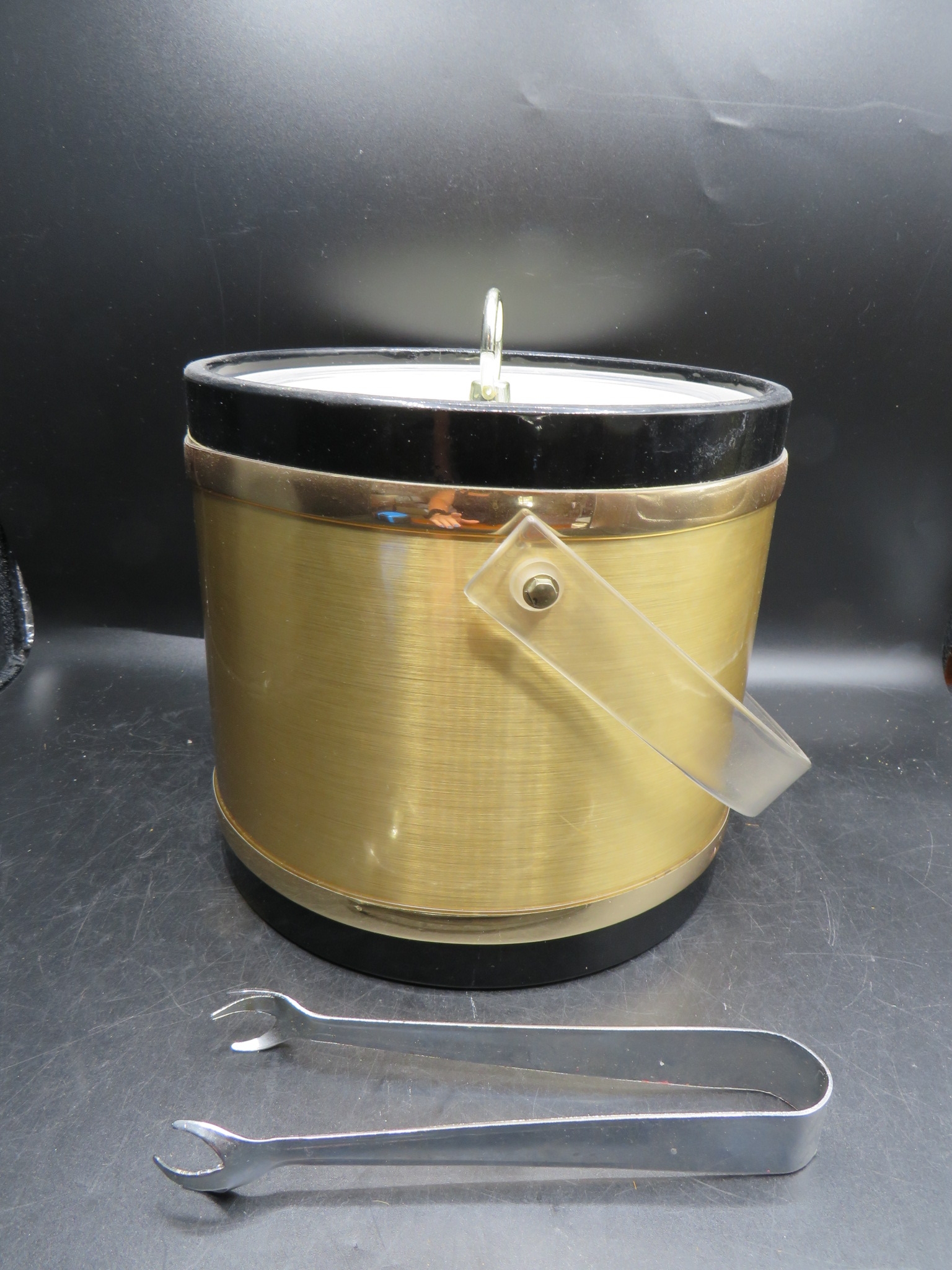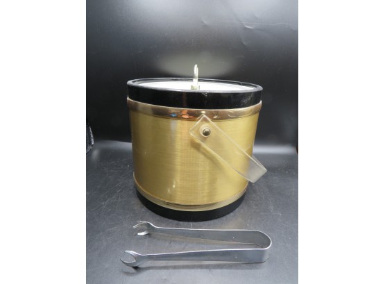 Fortunoff 3 Quart Brushed Gold Ice Bucket With Tongs